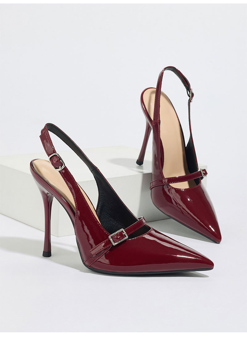 버건디 레드 포인티드 토 슬림 힐 하이힐 여성용 2026 신상 패셔너블하고 다재다능한 원스트랩 버클 슈즈 여성 해외배송스토어 가기