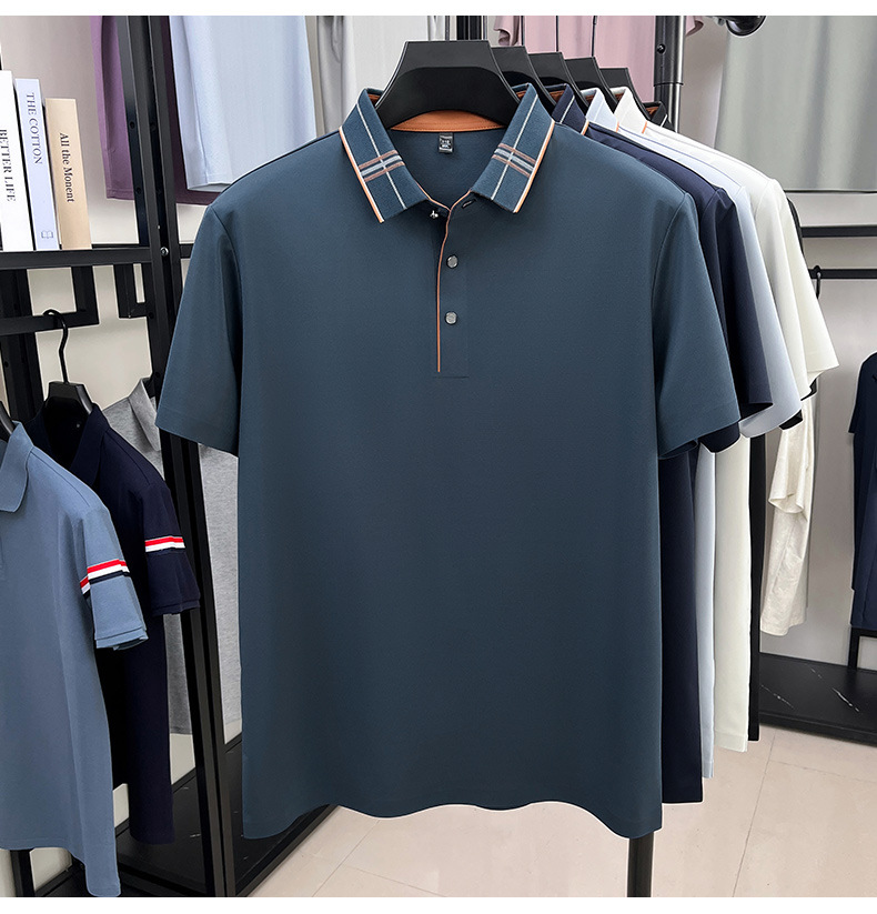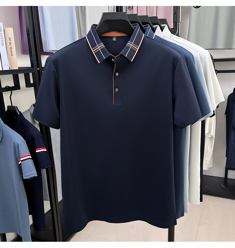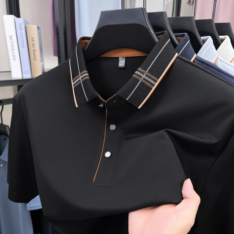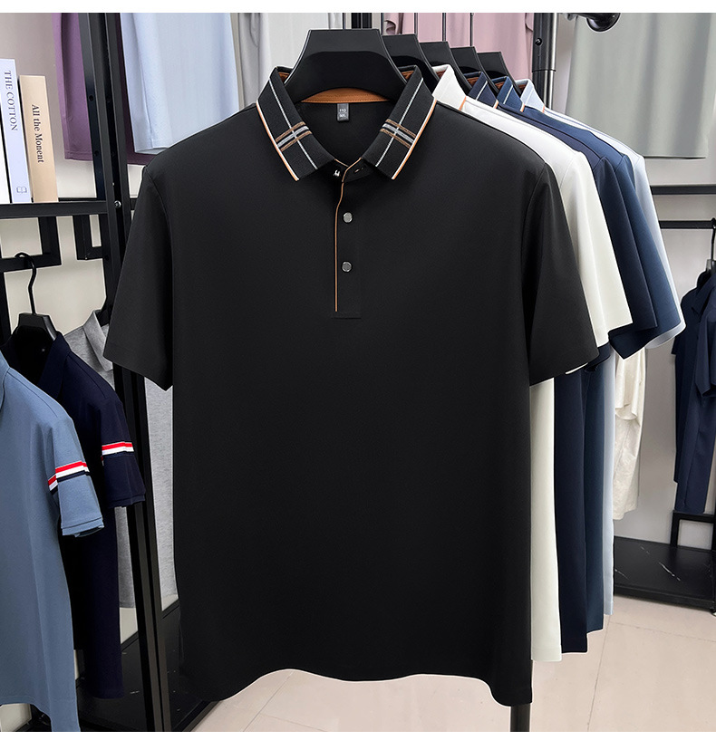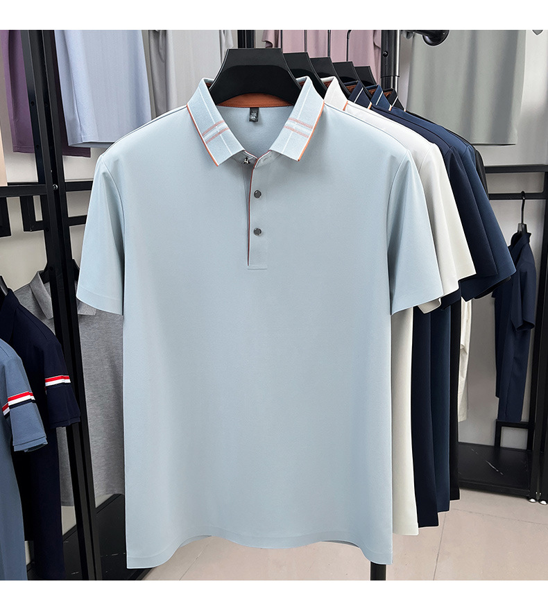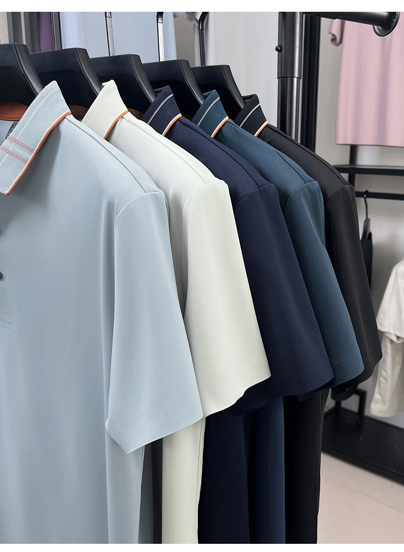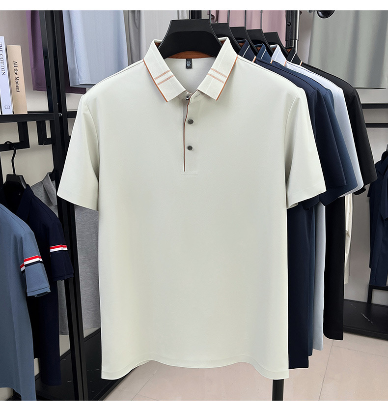 멀 베리 실크 원활한 옷깃 남성 폴로 셔츠 2025 여름 새로운 단색 비즈니스 통기성 얇은 짧은 소매 남성스토어 가기