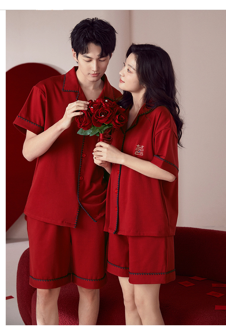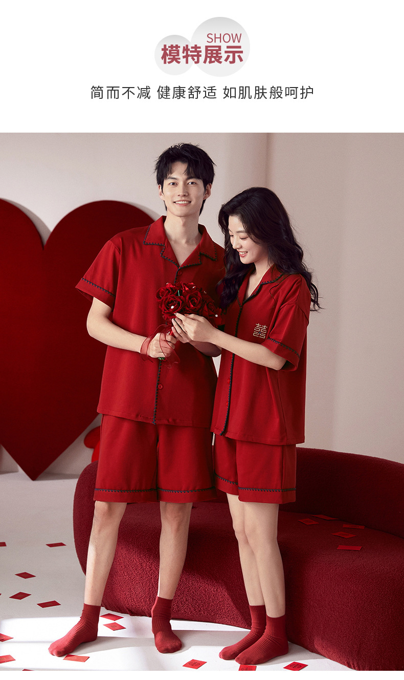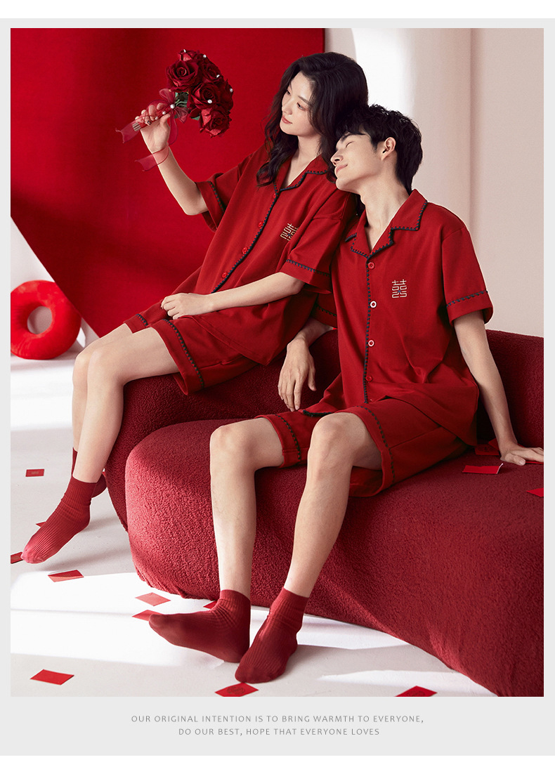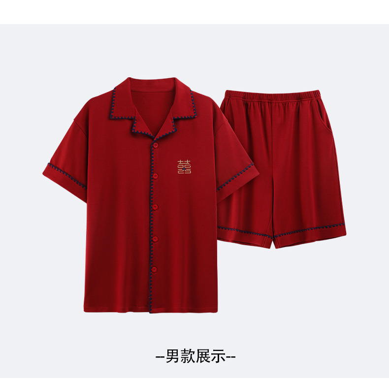 [7A 박테리오스타] 웨딩 커플 파자마 여성 여름 가슴 패드 붉은 세트 남성 웨딩 홈 의류 순면