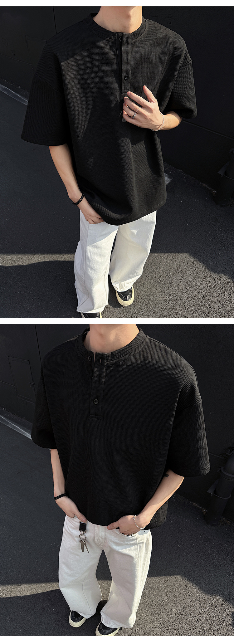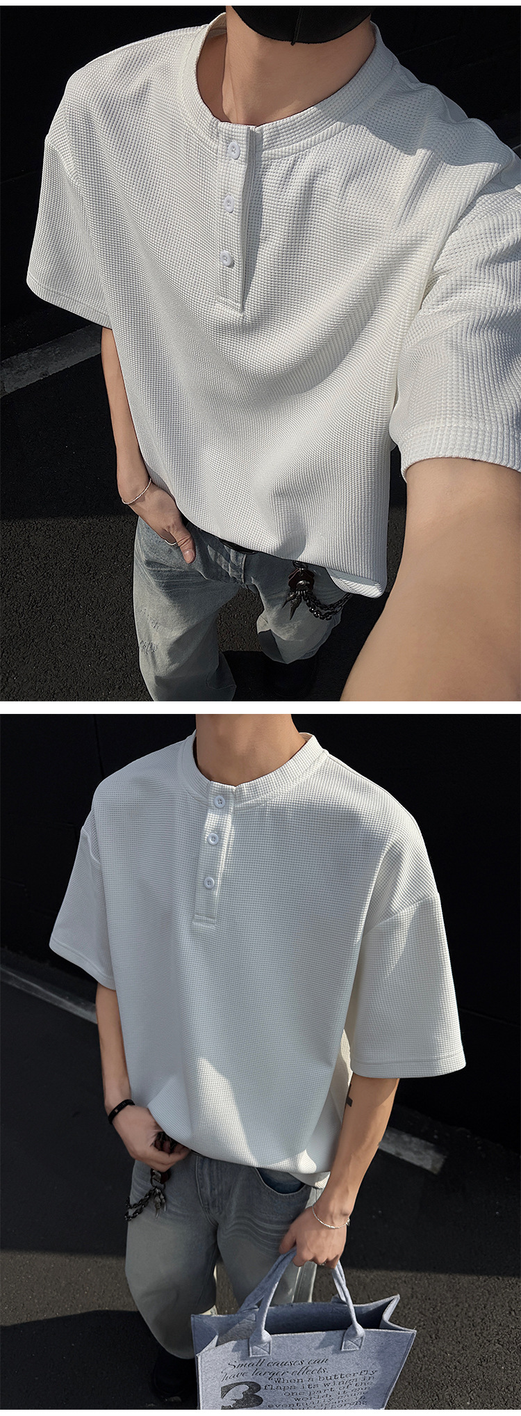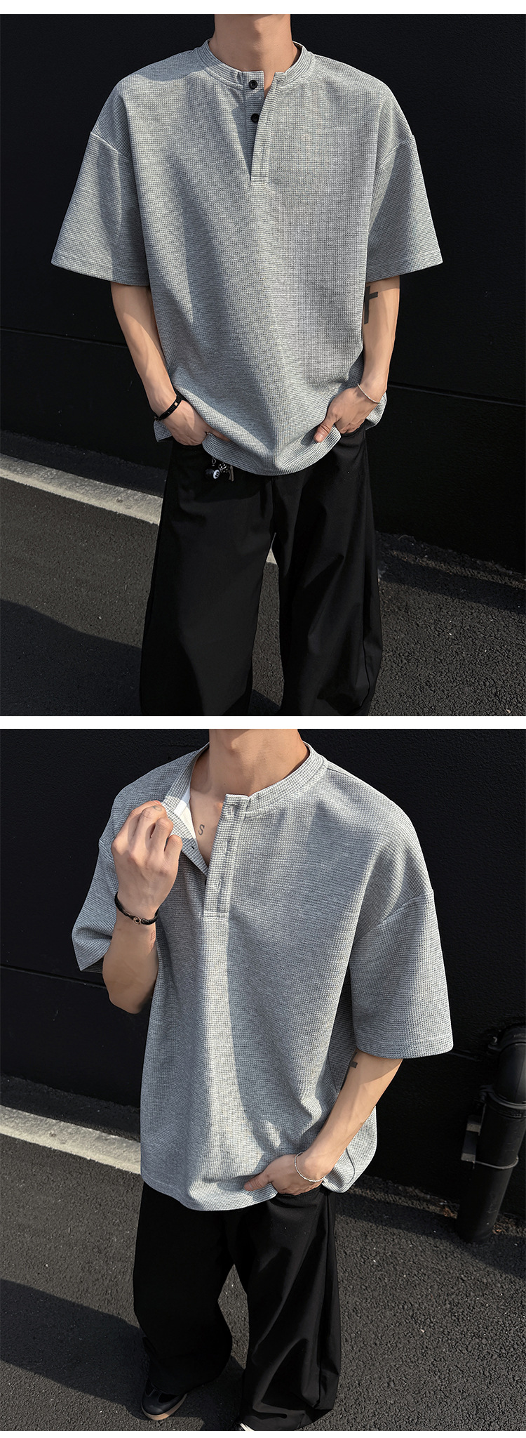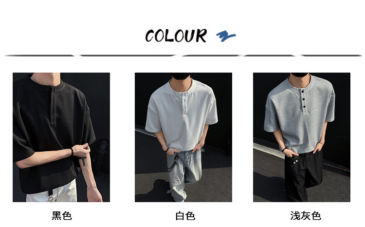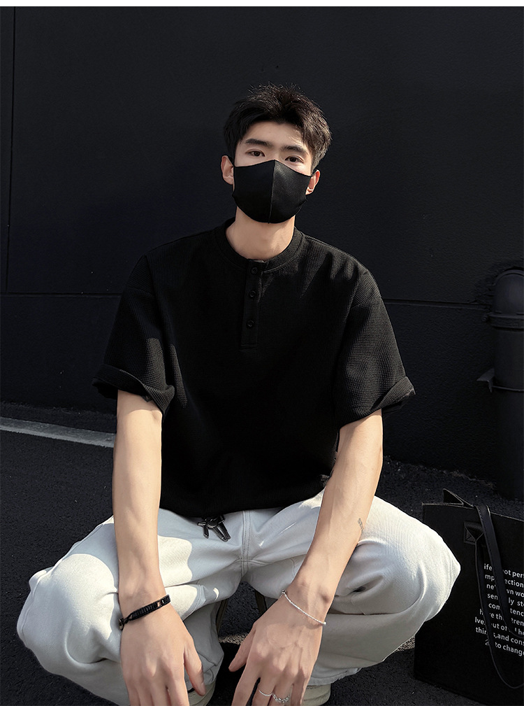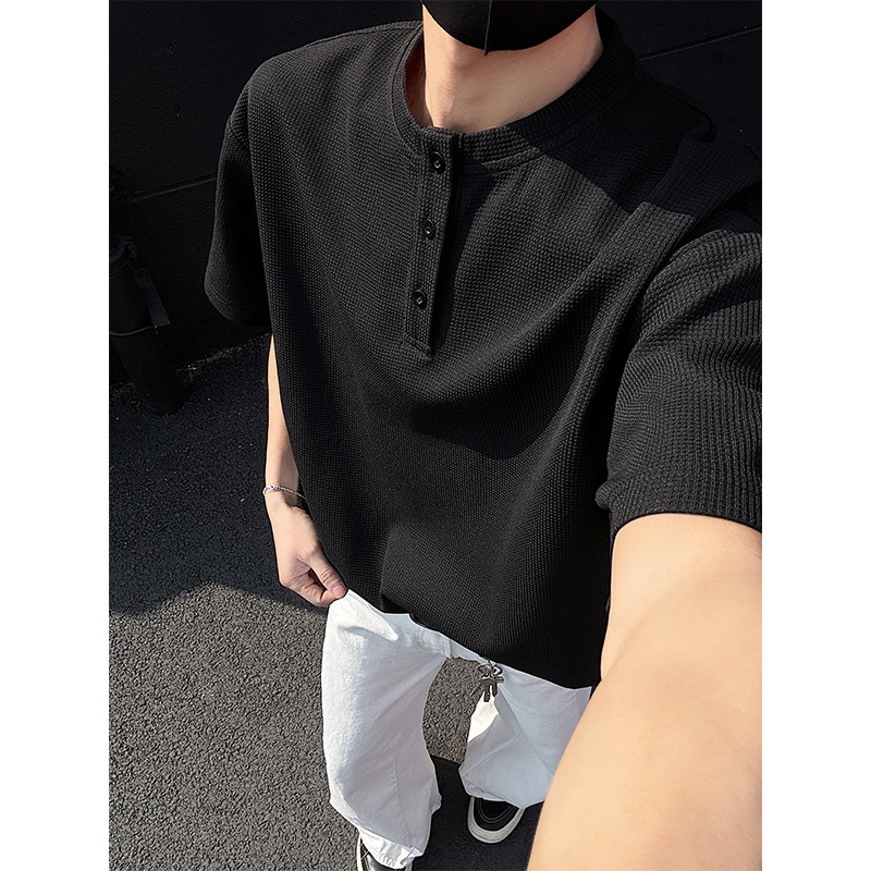 와플 반 지퍼 티셔츠 남자의 반소매 여름 유행과 잘 생긴 남자의 여름 미국 헨리 셔츠 반소매 티셔츠스토어 가기
