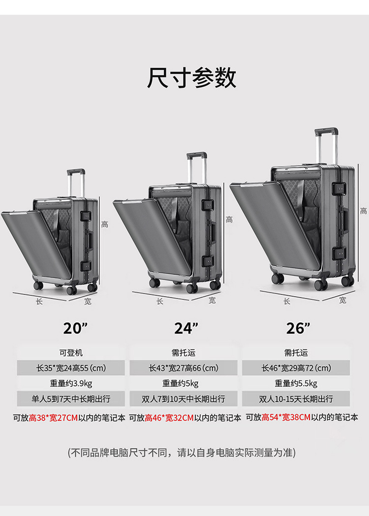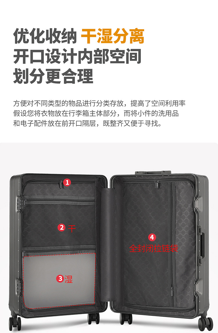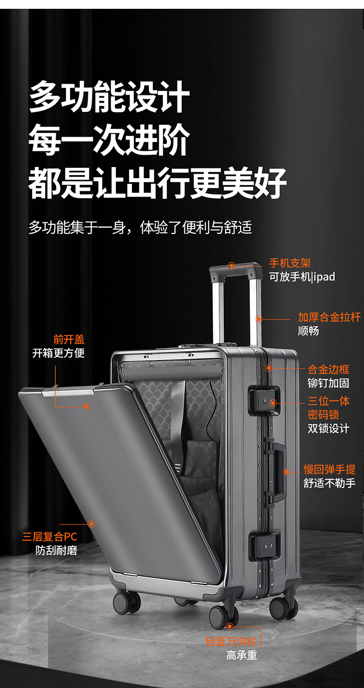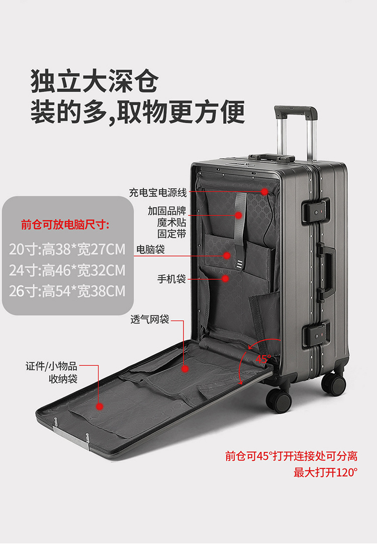 전면 개방형 트렁크 다기능 알루미늄 프레임 트롤리 케이스 20inch 남성과 여성을 위한 대용량 24비밀번호 가방 26inch