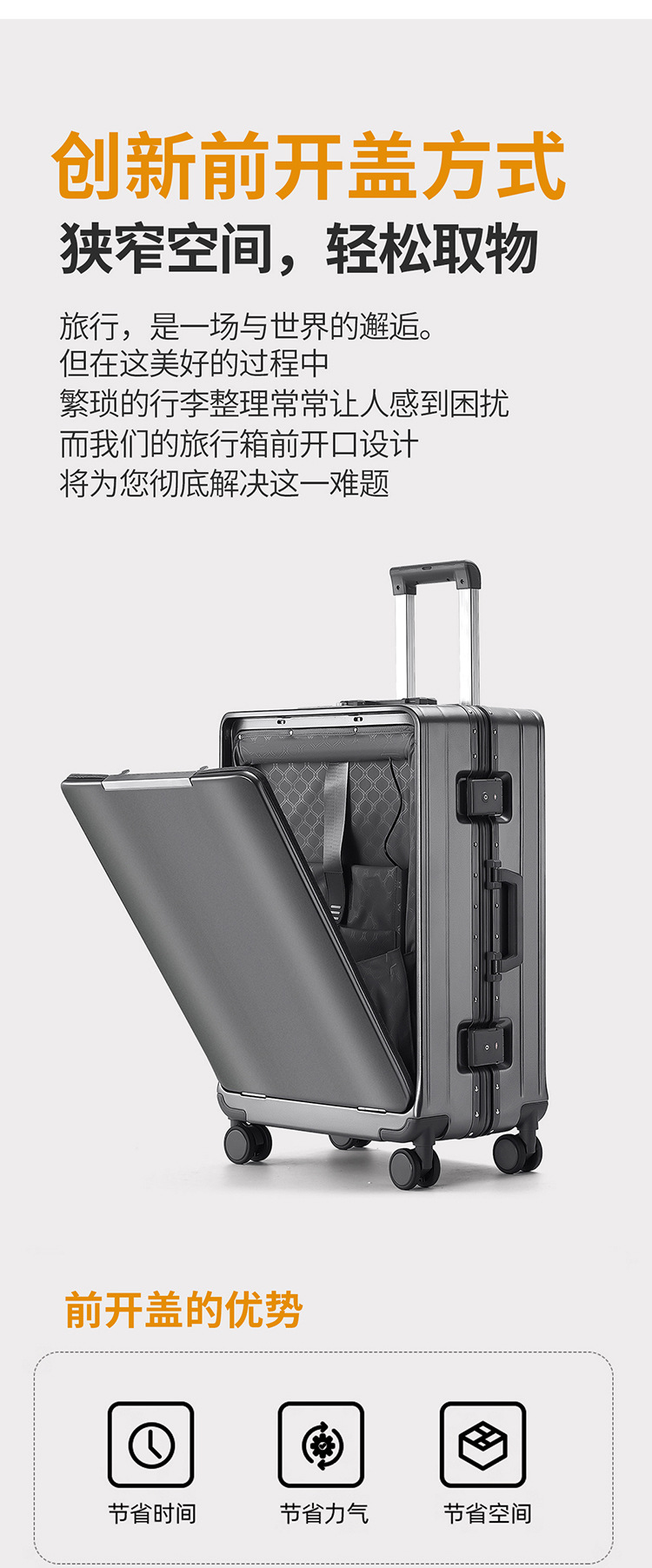 전면 개방형 트렁크 다기능 알루미늄 프레임 트롤리 케이스 20inch 남성과 여성을 위한 대용량 24비밀번호 가방 26inch스토어 가기