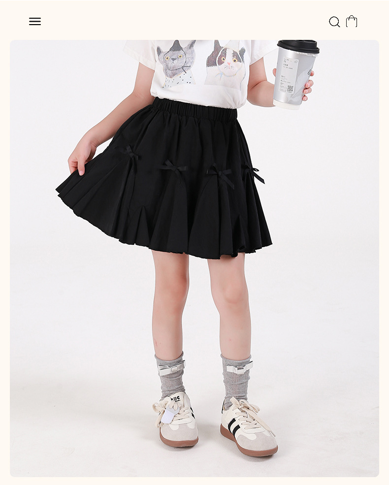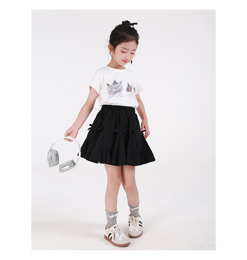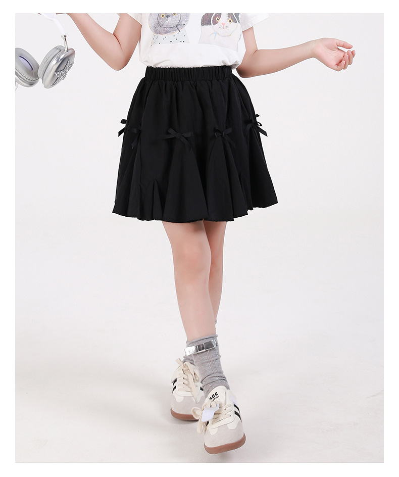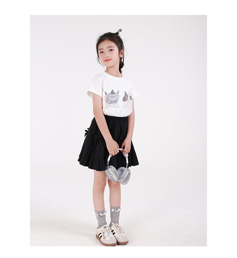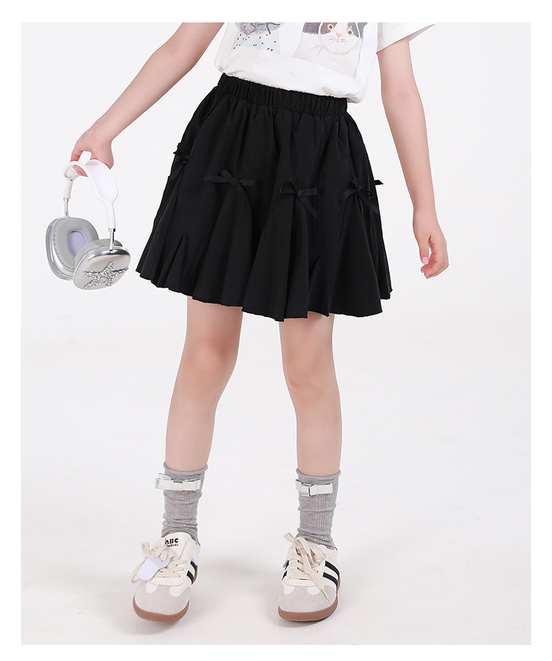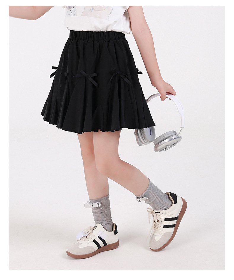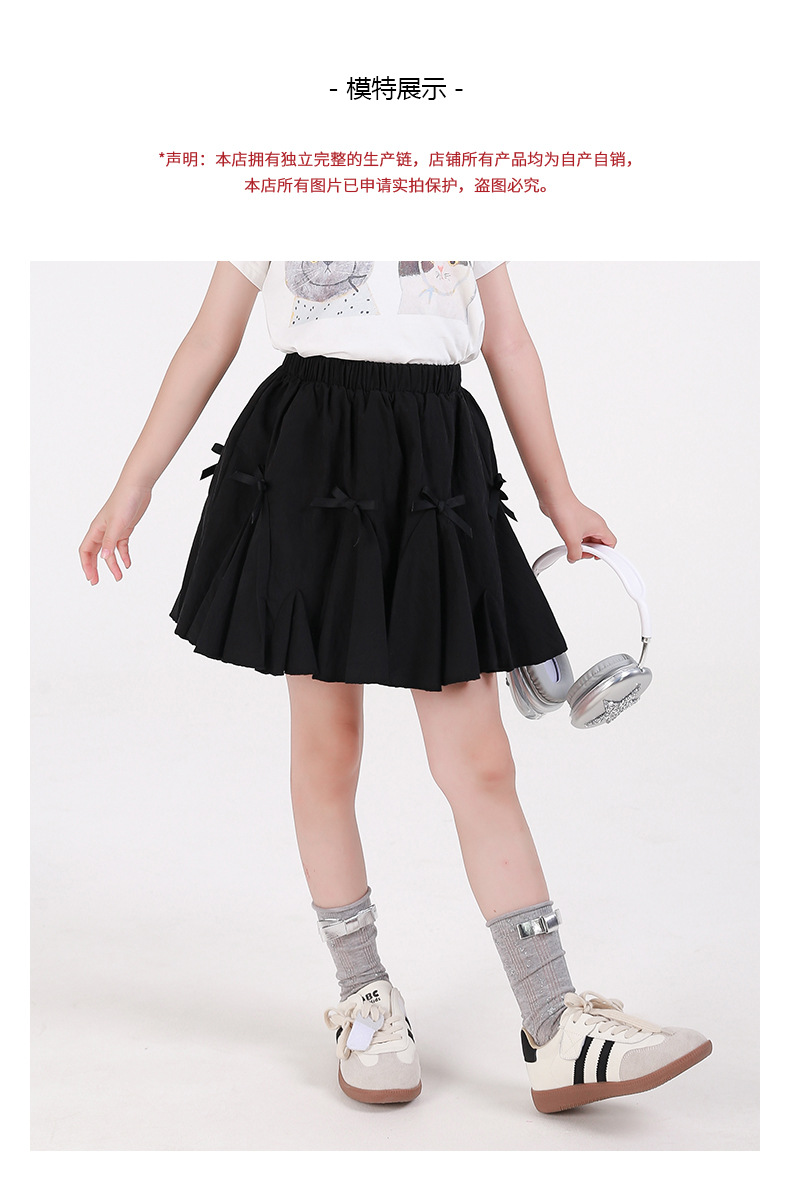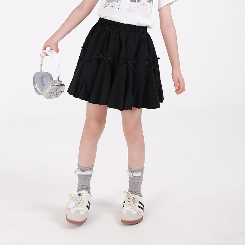 여자 스커트 여름 2025 새로운 중대형 어린이 짧은 스커트 주름 활 검은 스포츠 스커트 대학 스타일스토어 가기