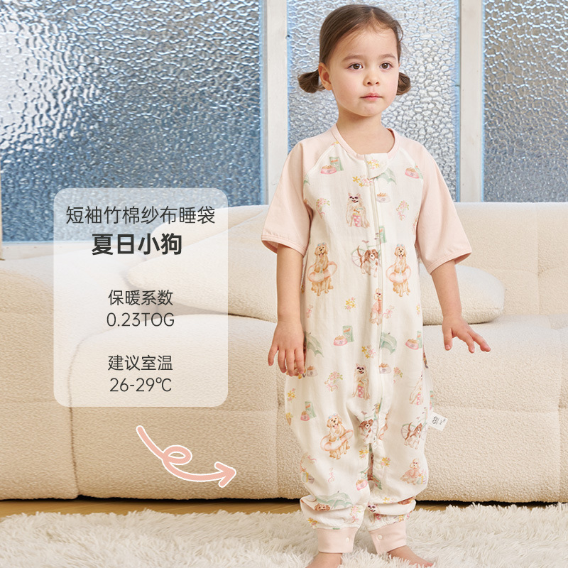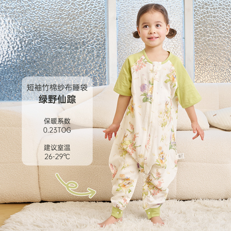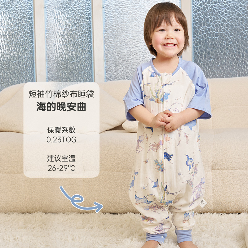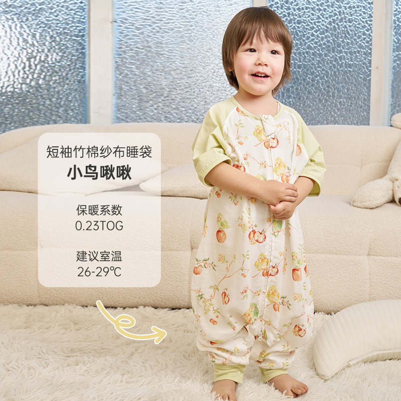 [옌쑤언 공동 이름] 댄 봄과 여름 얇은 슬리핑 백 아기 대나무 면 반팔 다리 어린이 댄 슬리핑 백