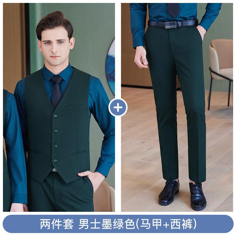 • 남성용 2피스 세트 - 짙은 녹색 조끼 + 바지