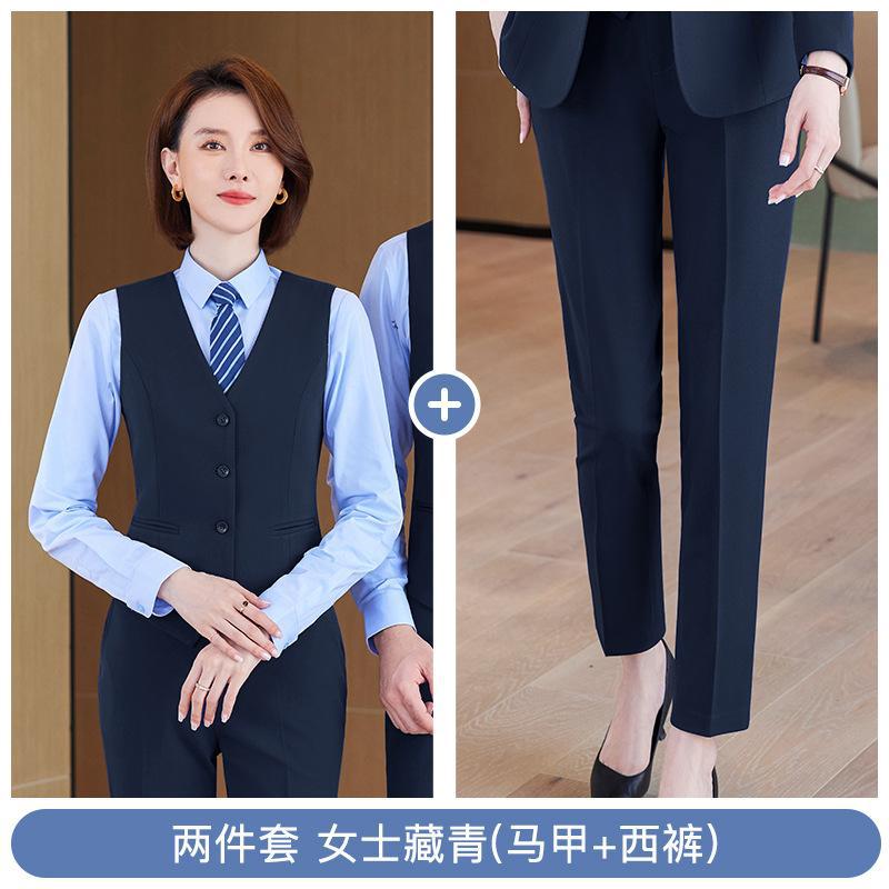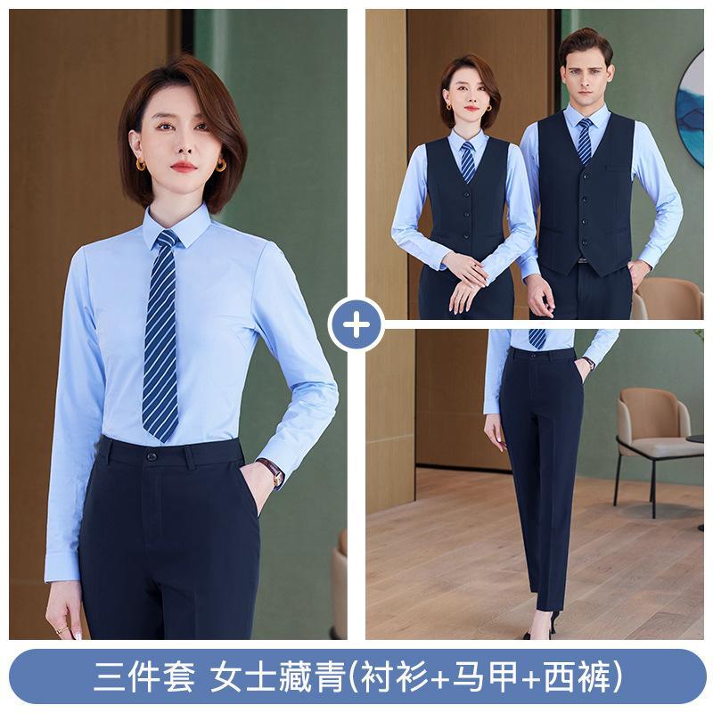 • 쓰리피스 슈트 - 여성용 네이비 블루 셔츠 + 조끼 + 바지