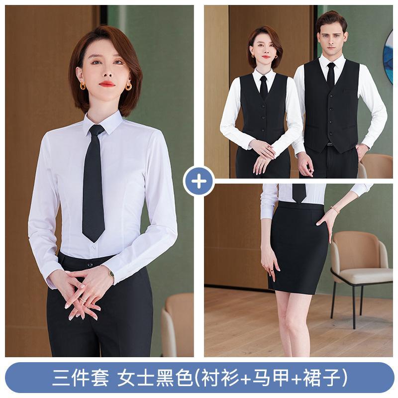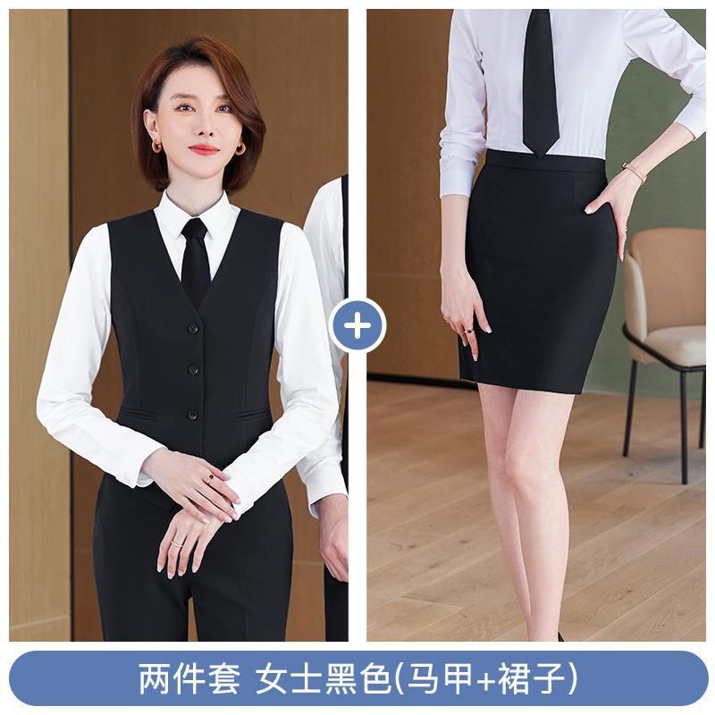• 쓰리피스 슈트 - 여성용 블랙 셔츠 + 조끼 + 스커트
