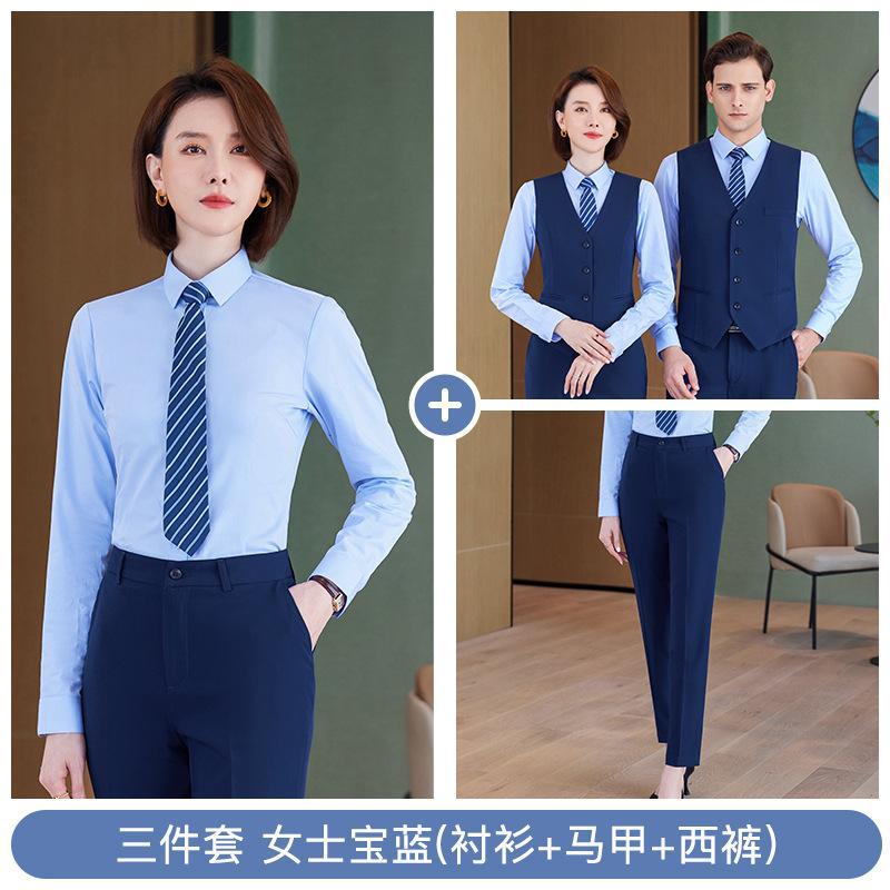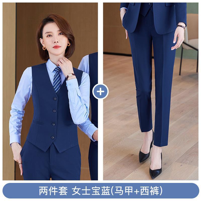 • 쓰리피스 슈트 - 여성용 로얄블루 셔츠 + 조끼 + 바지