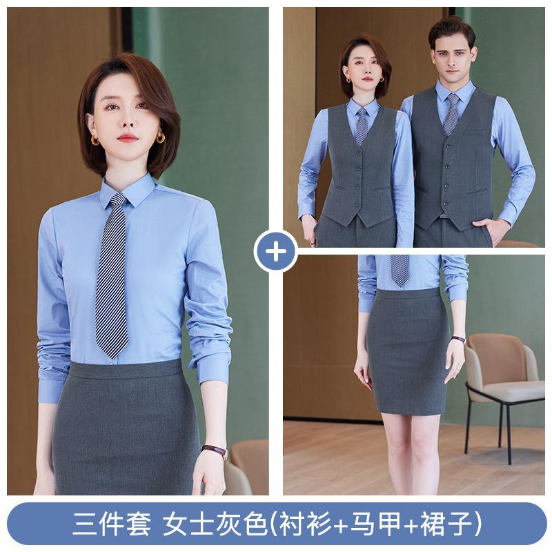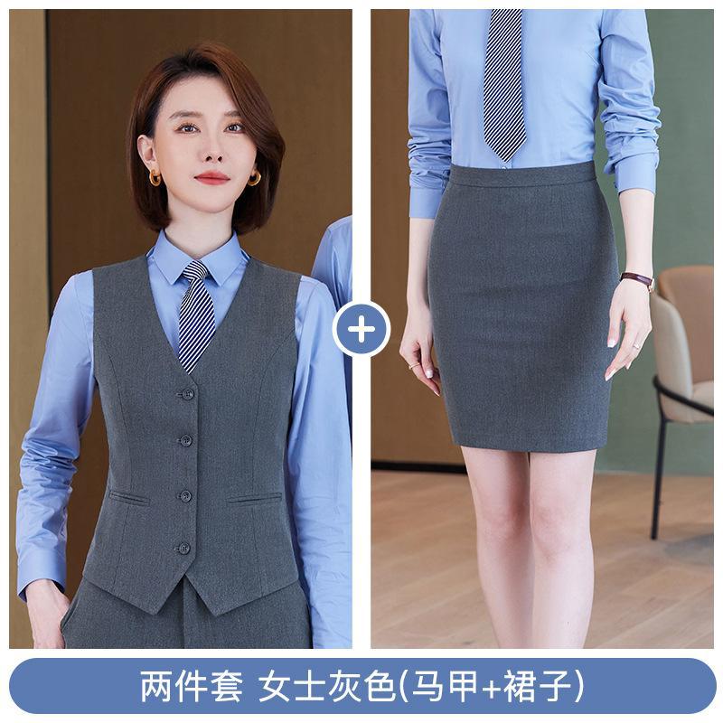 • 쓰리피스 슈트 - 여성용 그레이 셔츠 + 조끼 + 스커트