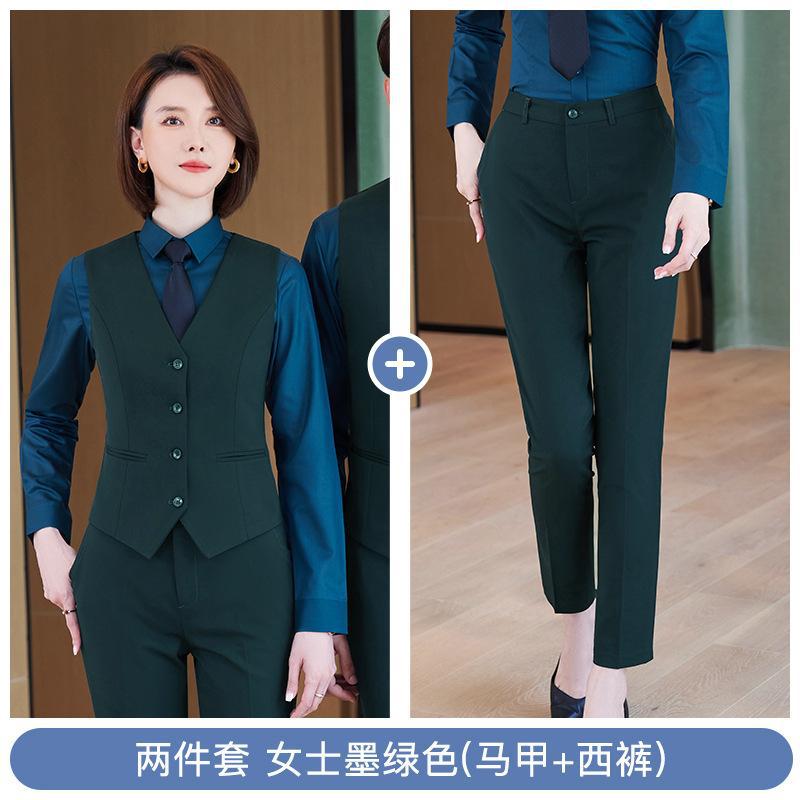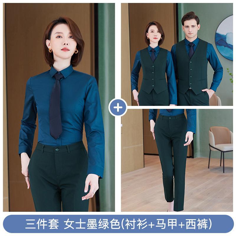 • 쓰리피스 슈트 - 여성용 짙은 녹색 셔츠 + 조끼 + 바지