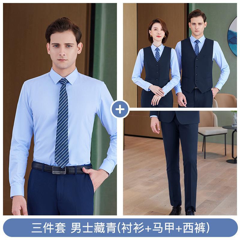 • 쓰리피스 수트 - 남성용 남색 셔츠 + 조끼 + 바지