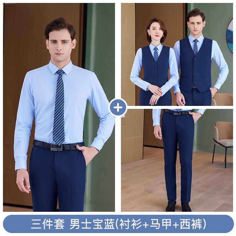 • 3종 세트 - 남성용 로얄블루 셔츠 + 조끼 + 바지