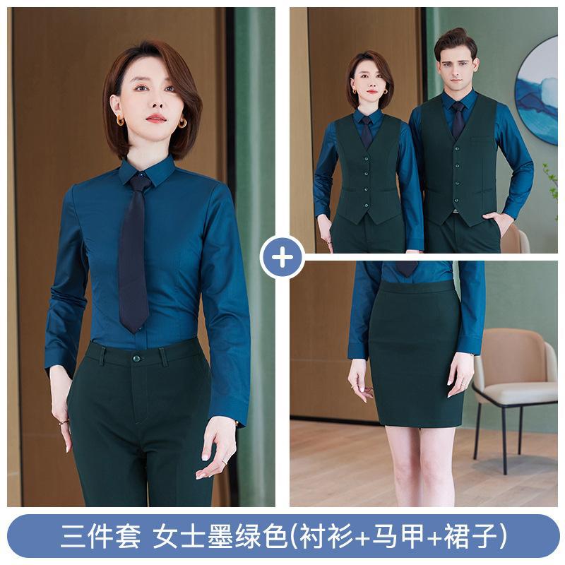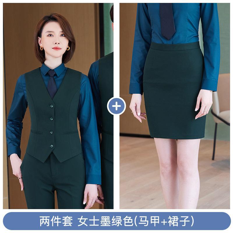 • 쓰리피스 슈트 - 여성용 짙은 녹색 셔츠 + 조끼 + 스커트