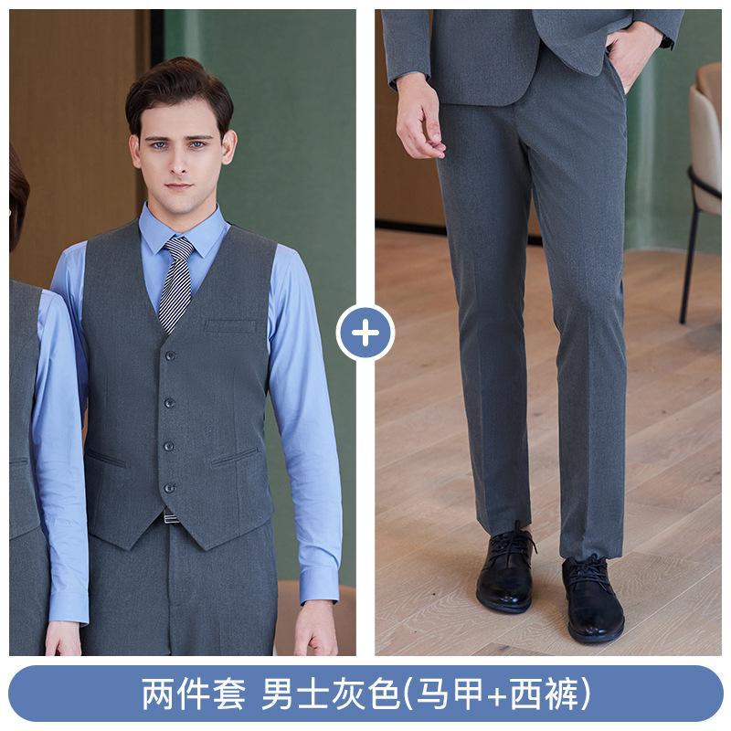 • 투피스 세트 - 남성용 회색 조끼 + 바지
