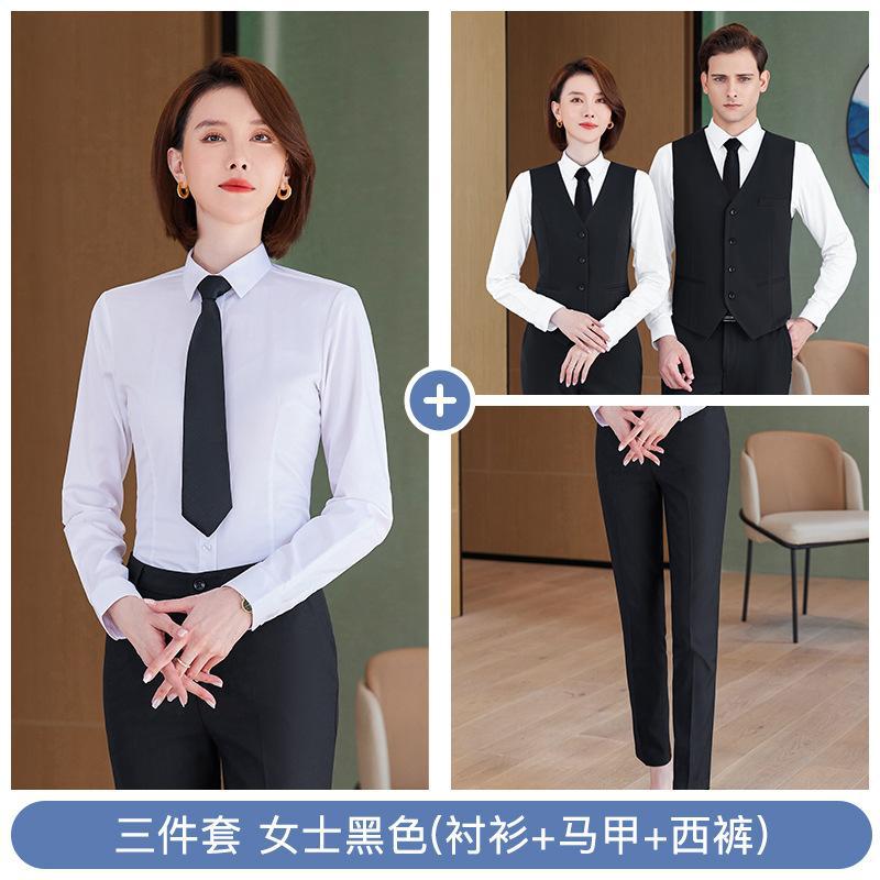 • 쓰리피스 슈트 - 여성용 검정색 셔츠 + 조끼 + 바지