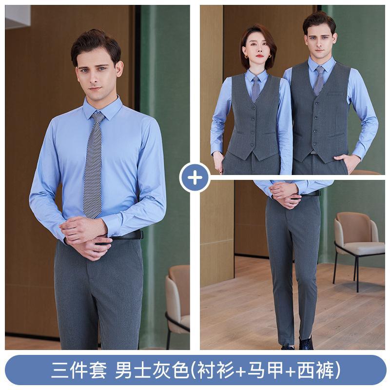• 쓰리피스 수트 - 남성용 그레이 셔츠 + 조끼 + 바지