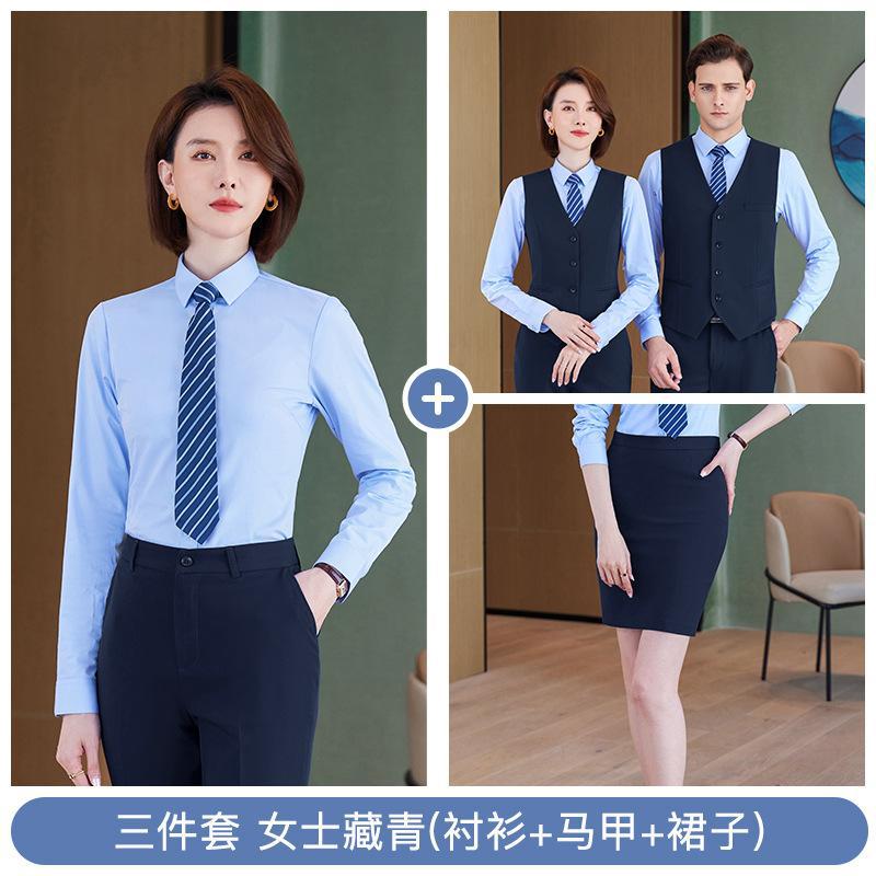 • 쓰리피스 슈트 - 여성용 네이비 블루 셔츠 + 조끼 + 스커트
