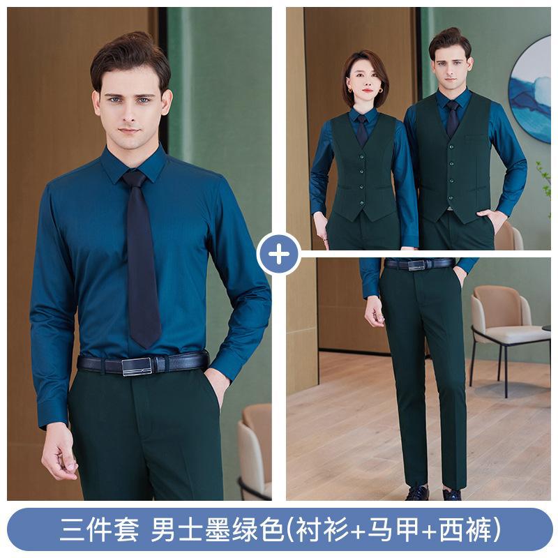 • 쓰리피스 슈트 - 남성용 짙은 녹색 셔츠 + 조끼 + 바지