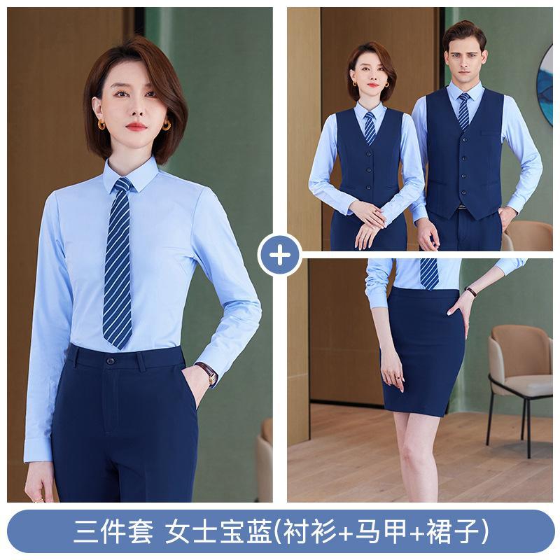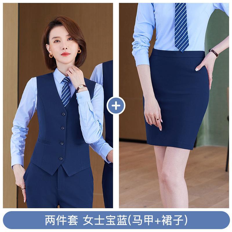 • 쓰리피스 슈트 - 여성용 로얄 블루 셔츠 + 조끼 + 스커트