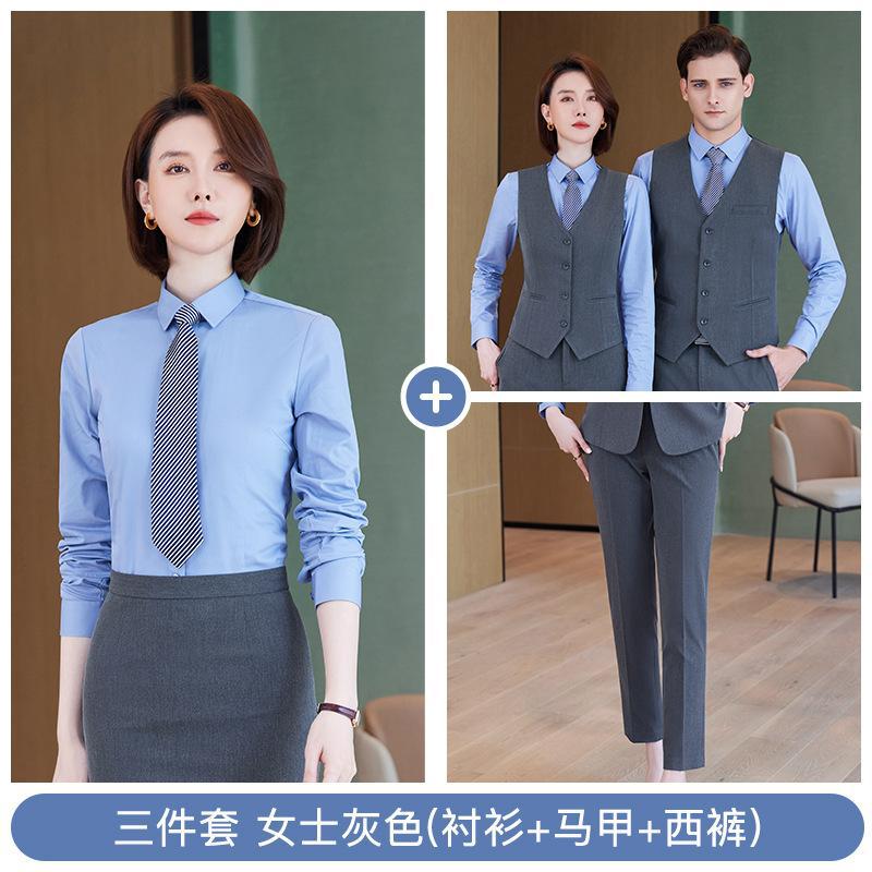• 쓰리피스 슈트 - 여성용 그레이 셔츠 + 조끼 + 바지