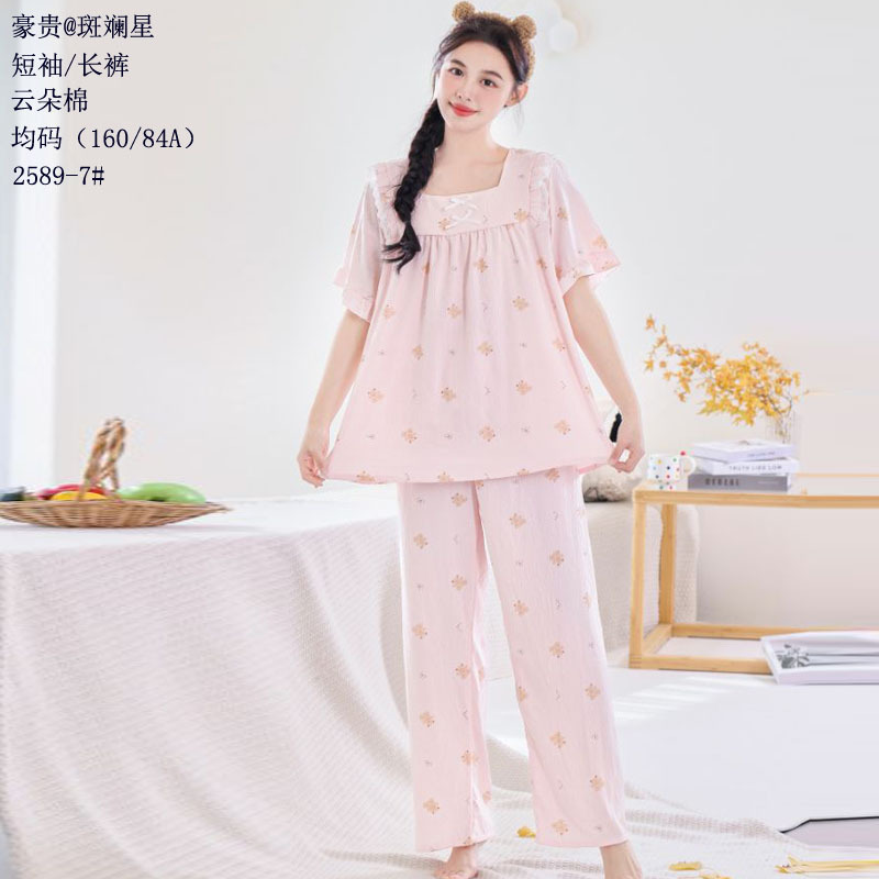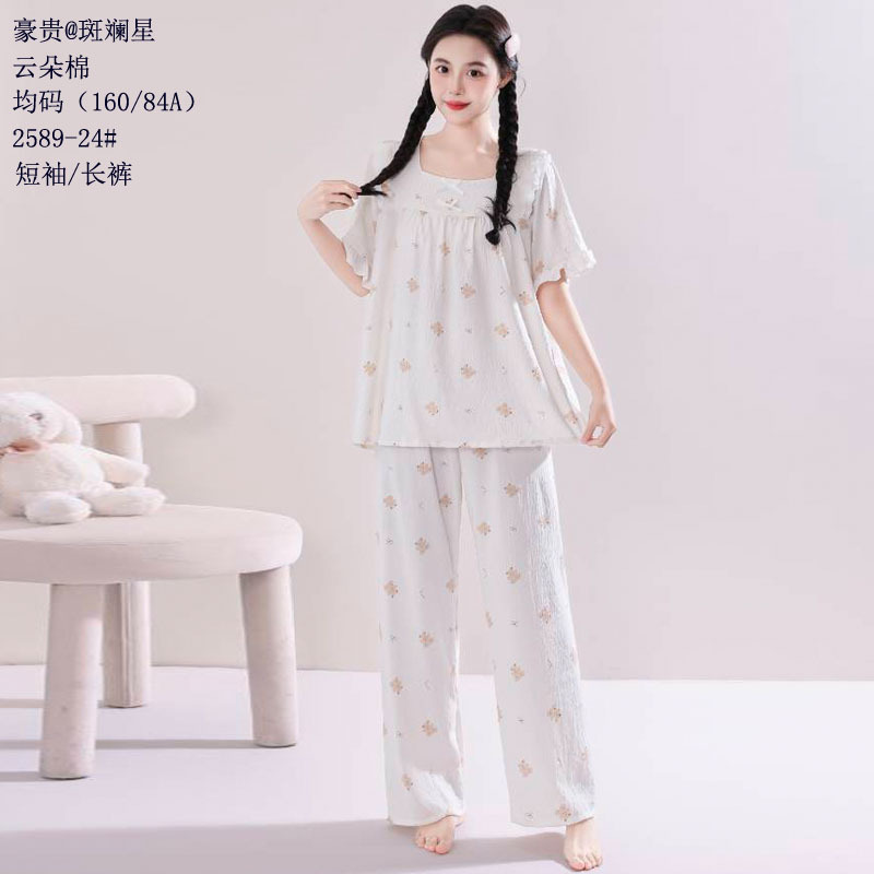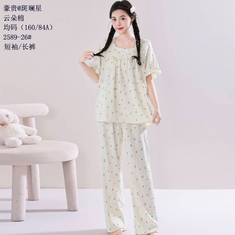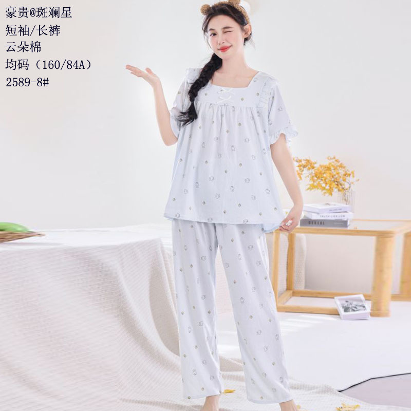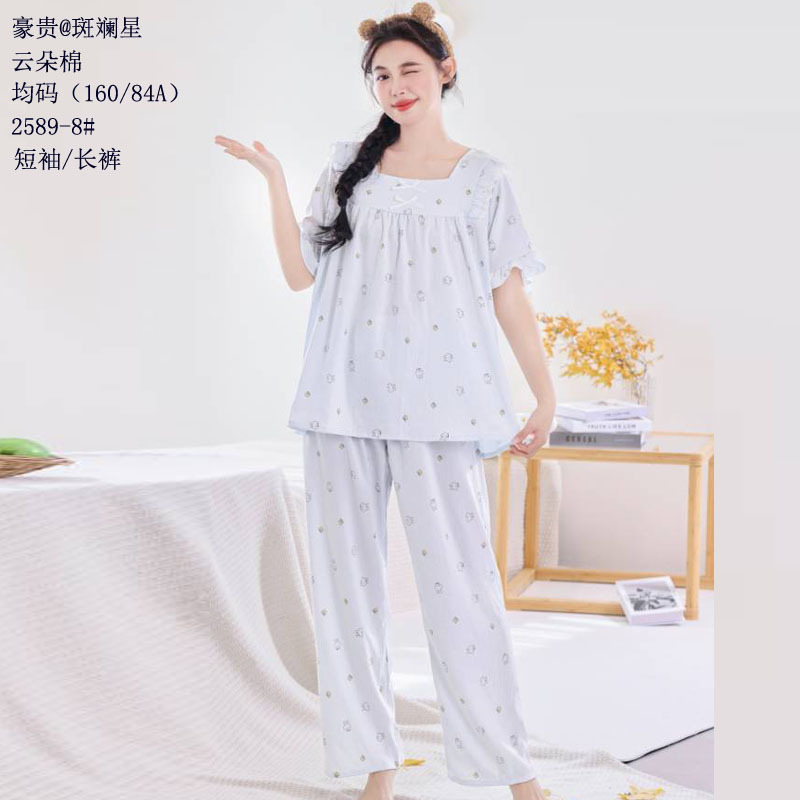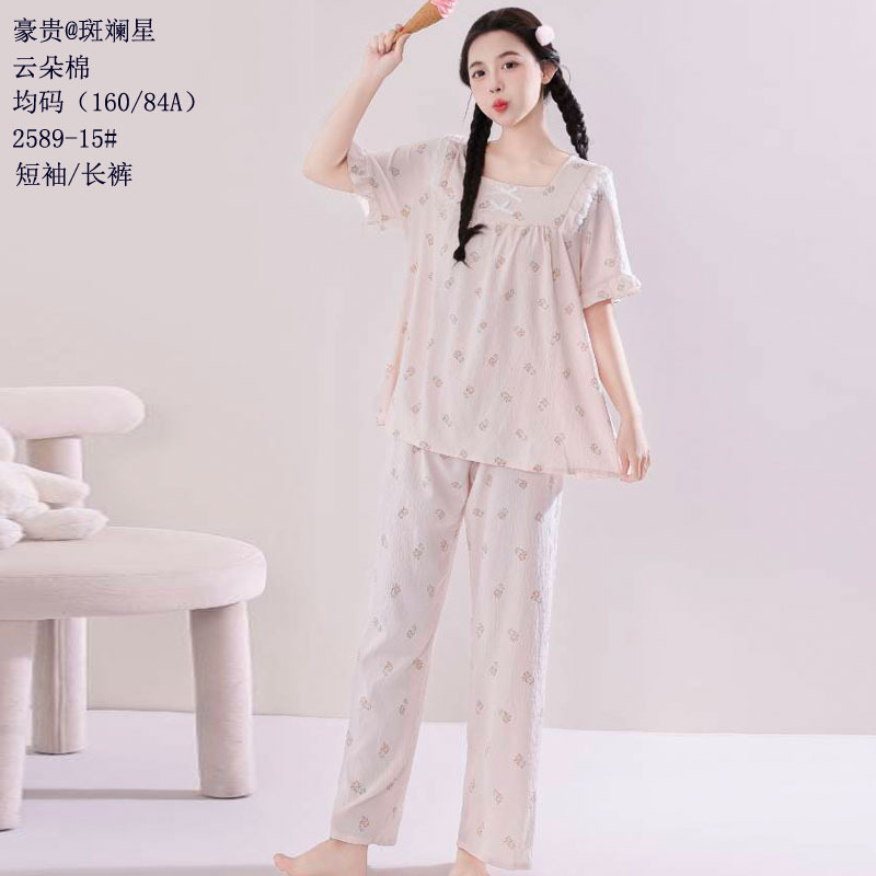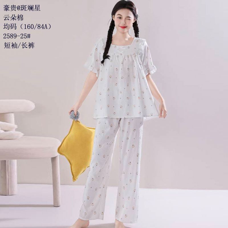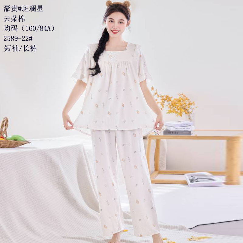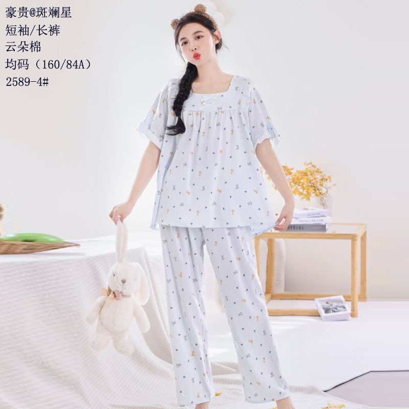 Hao Gui Yun Duo Cotton 반팔 바지 파자마 25 새로운 라운드 넥 패션 캐주얼 여성 풀오버 홈 의류스토어 가기