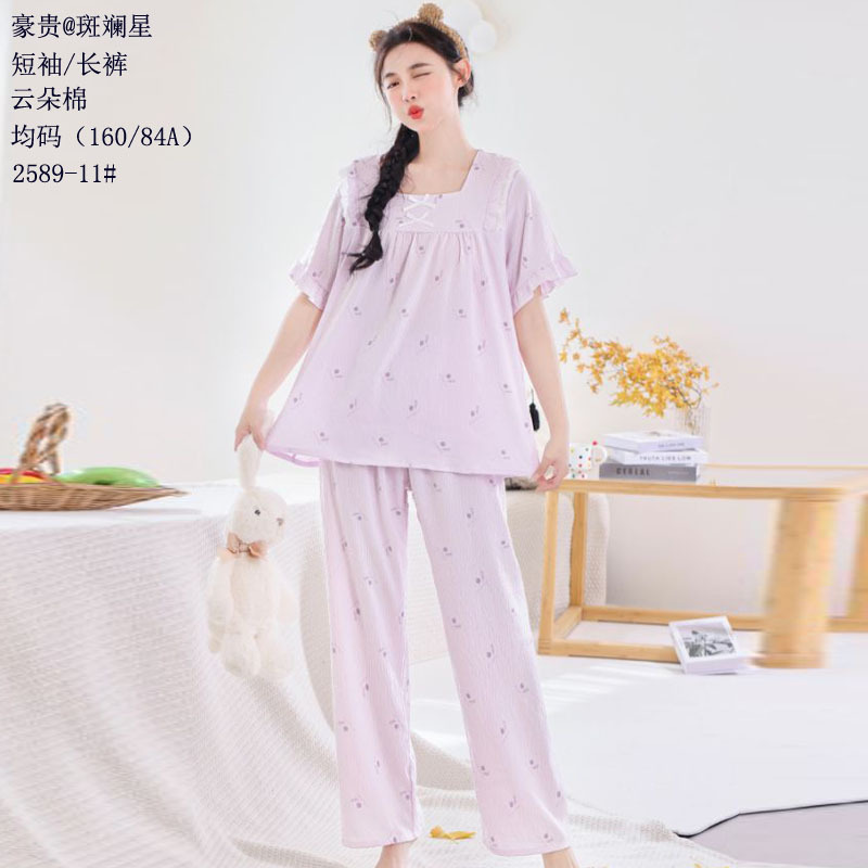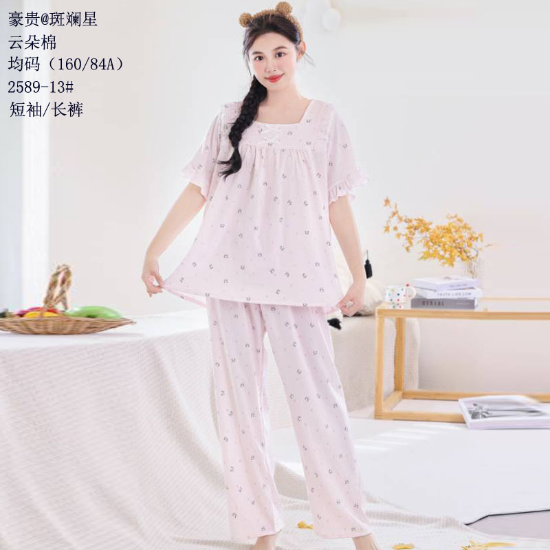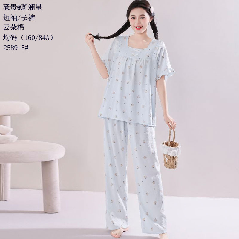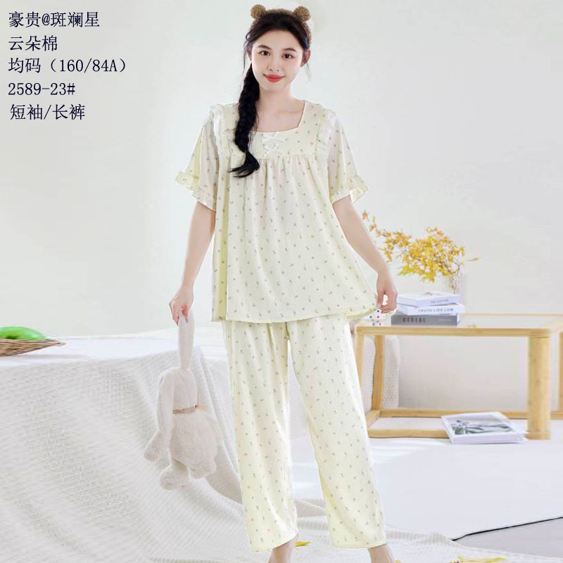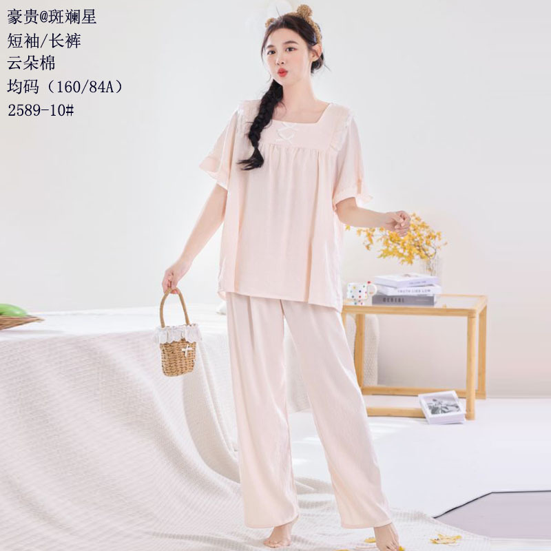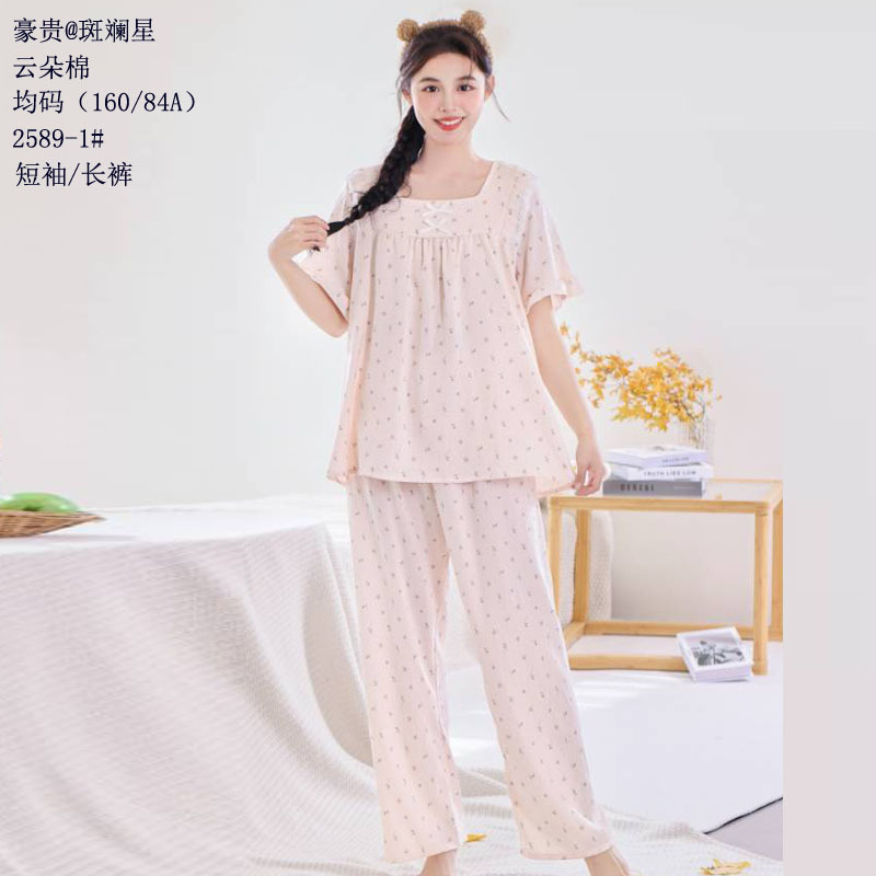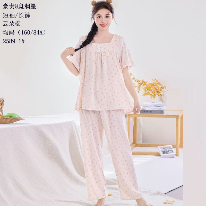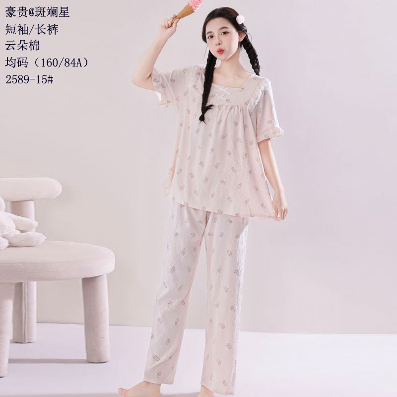 Hao Gui Yun Duo Cotton 반팔 바지 파자마 25 새로운 라운드 넥 패션 캐주얼 여성 풀오버 홈 의류스토어 가기
