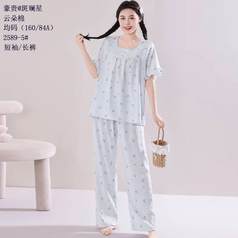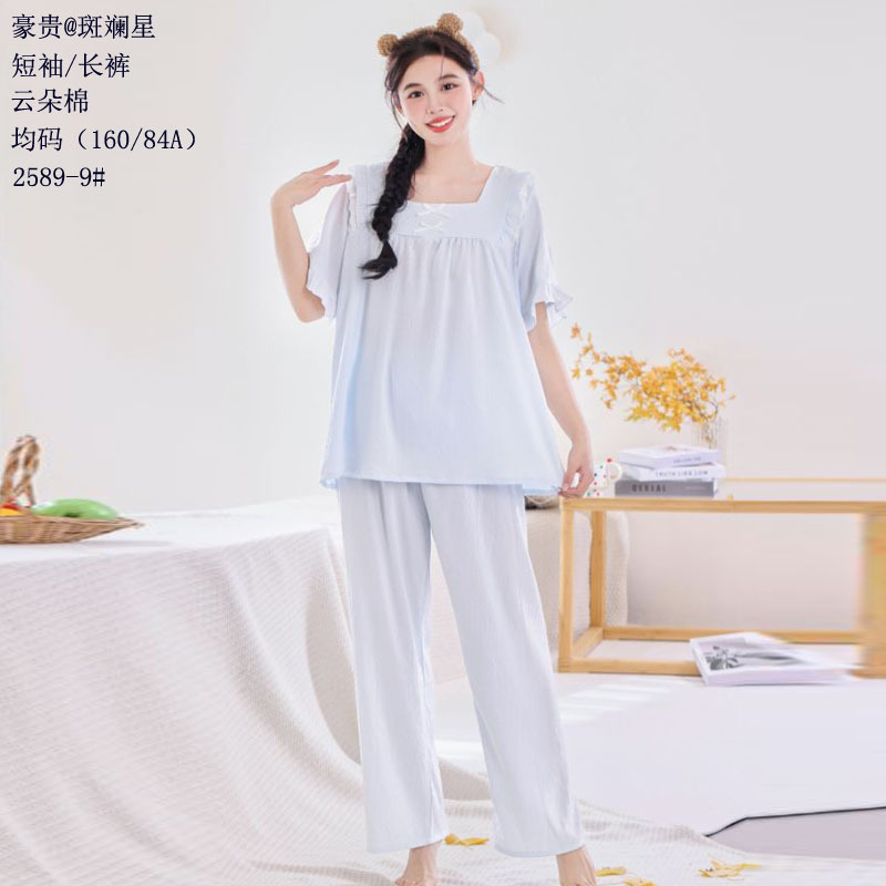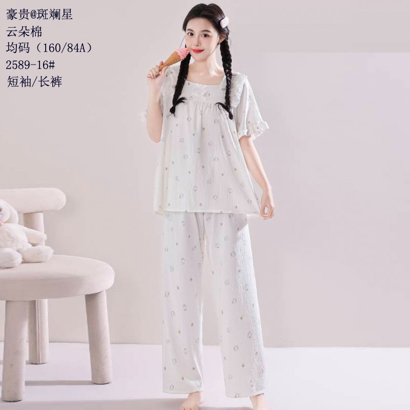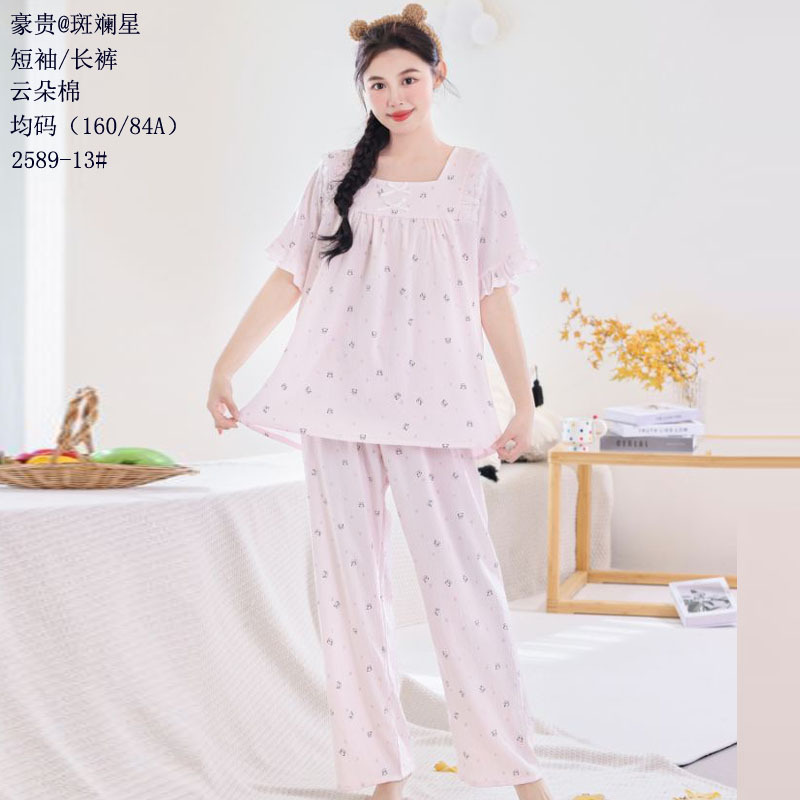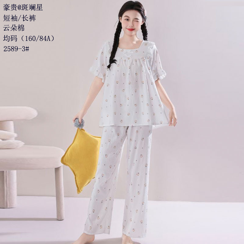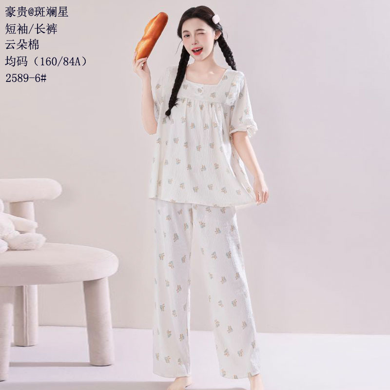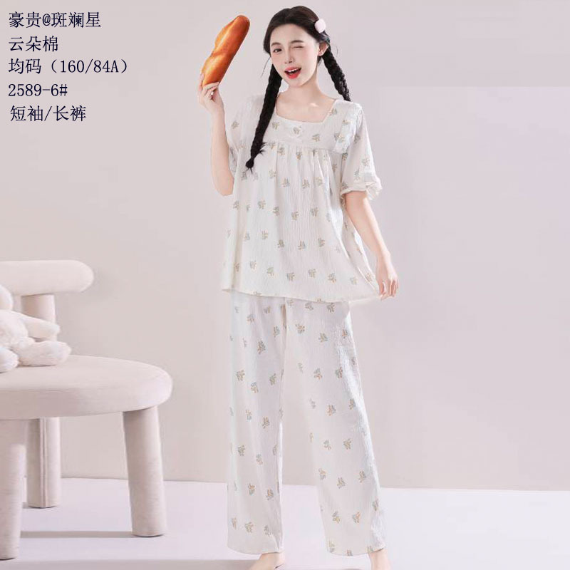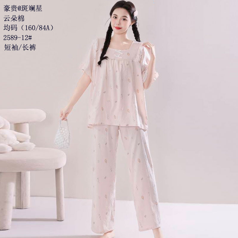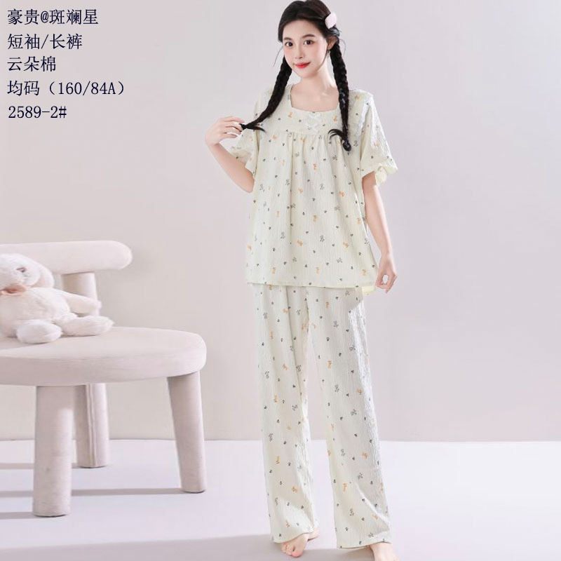 Hao Gui Yun Duo Cotton 반팔 바지 파자마 25 새로운 라운드 넥 패션 캐주얼 여성 풀오버 홈 의류스토어 가기