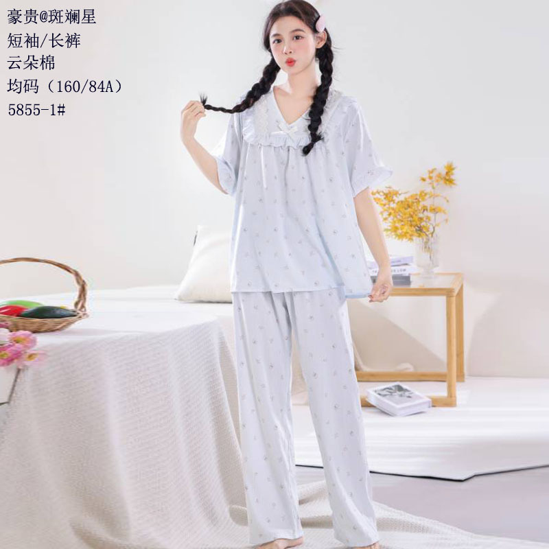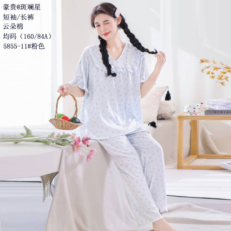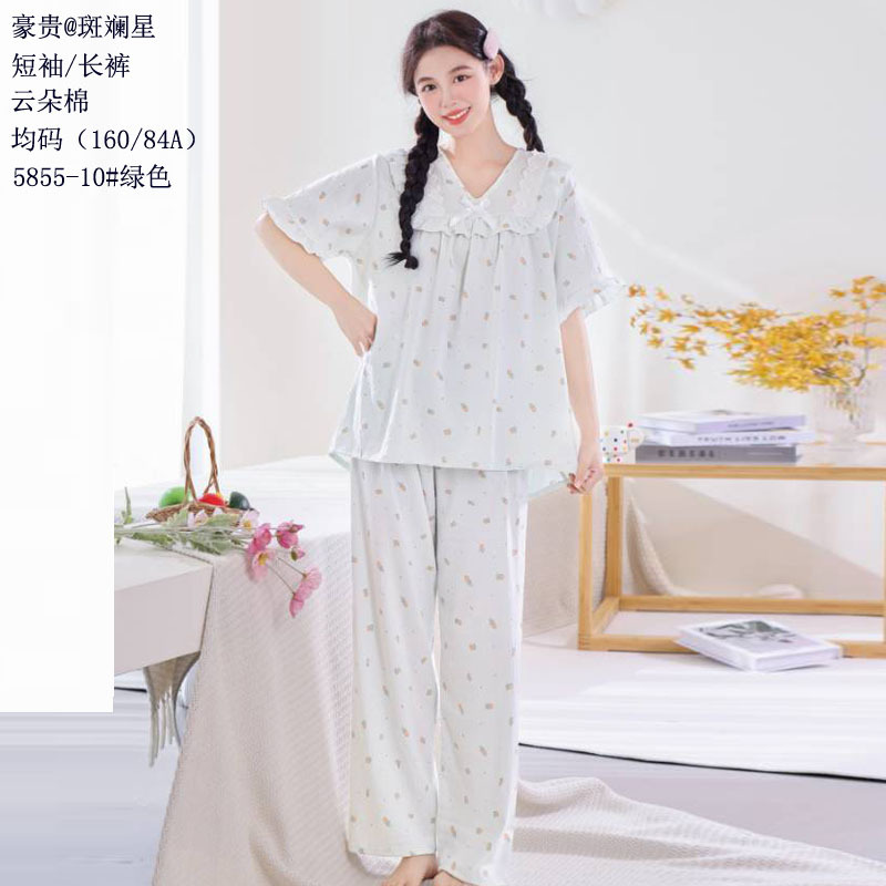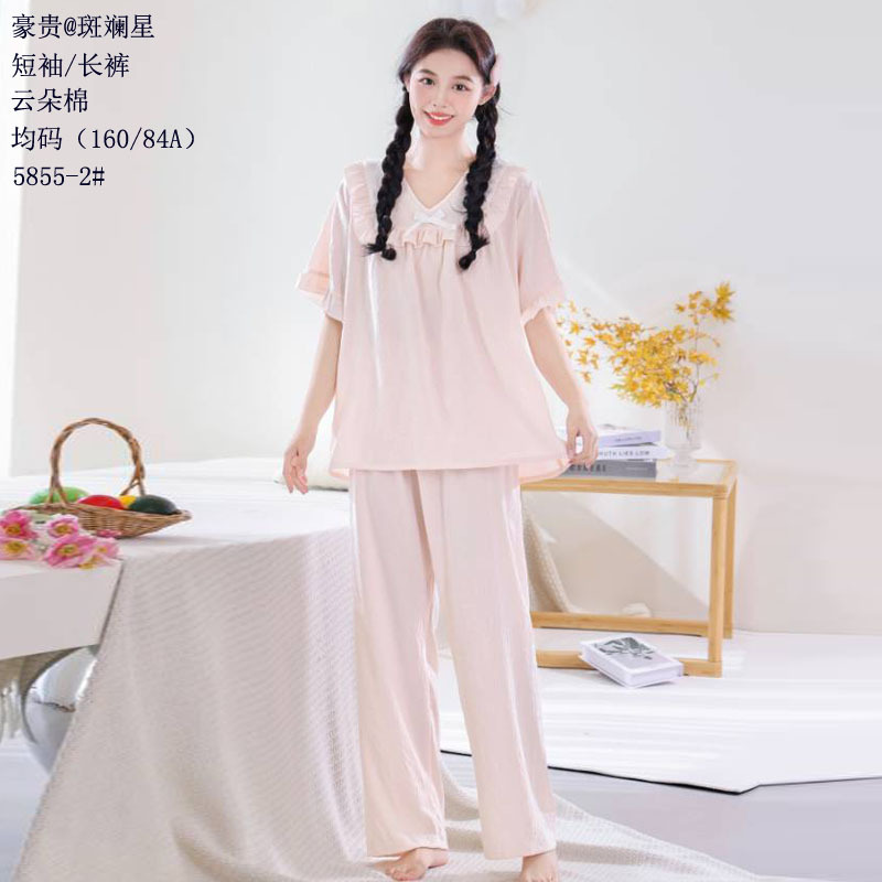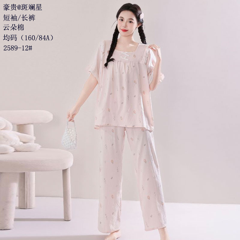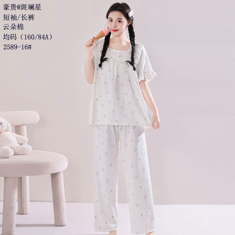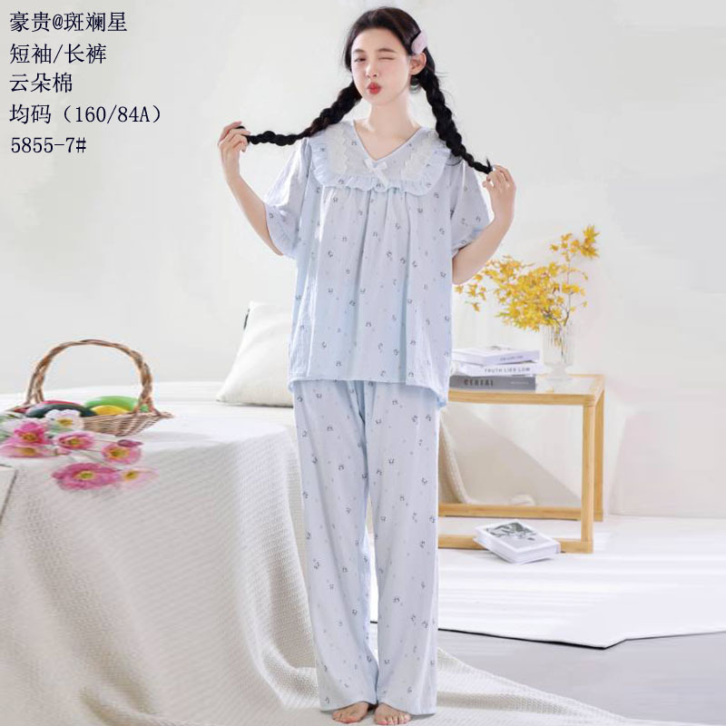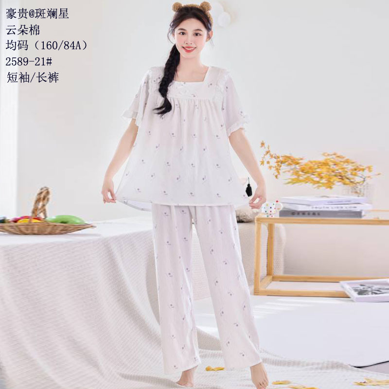 Hao Gui Yun Duo Cotton 반팔 바지 파자마 25 새로운 라운드 넥 패션 캐주얼 여성 풀오버 홈 의류스토어 가기