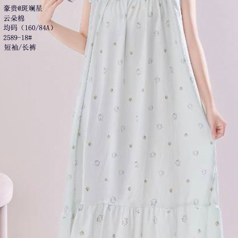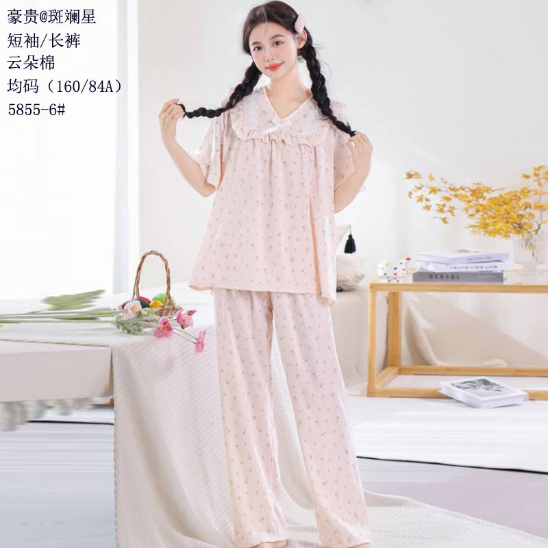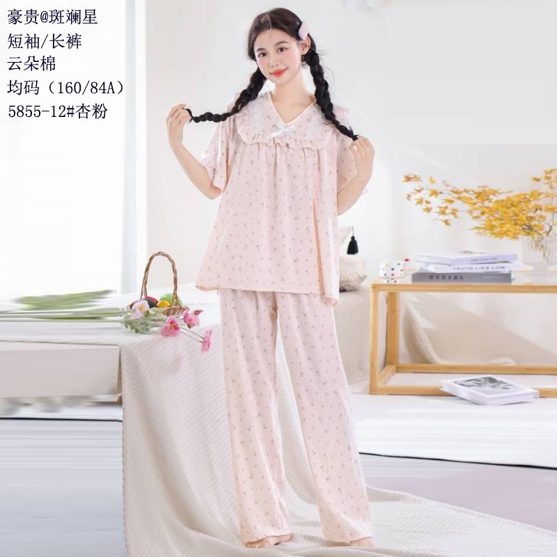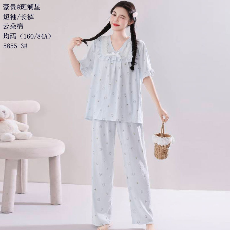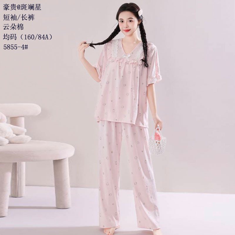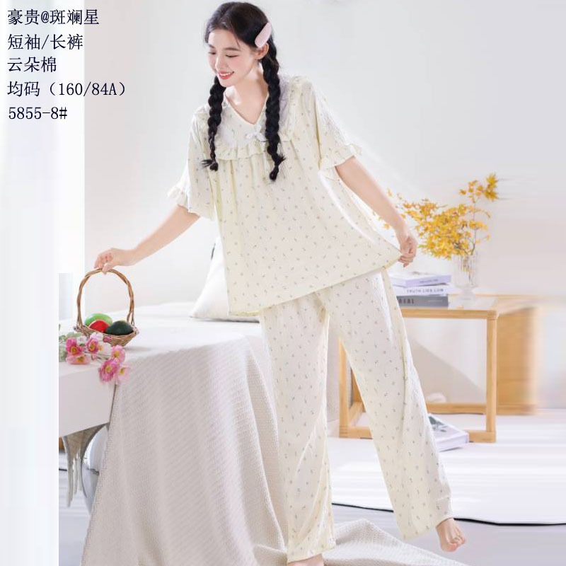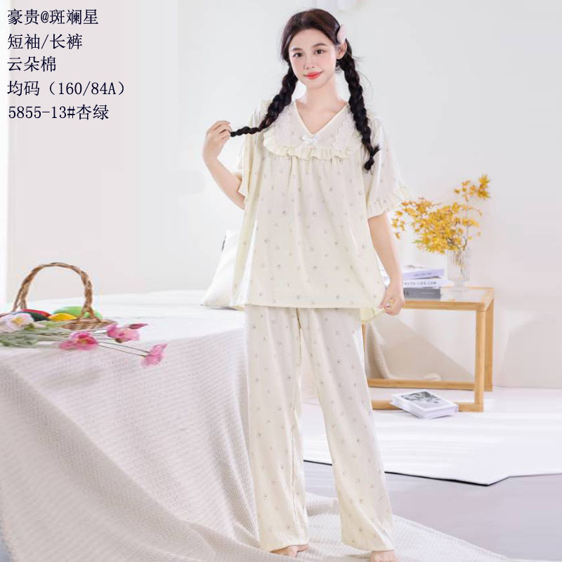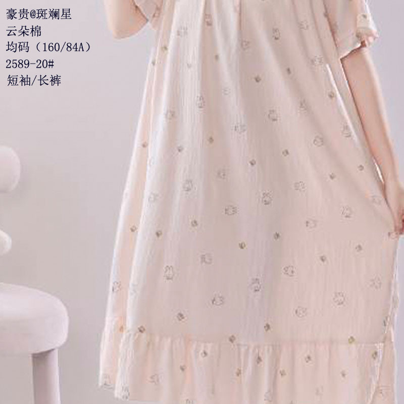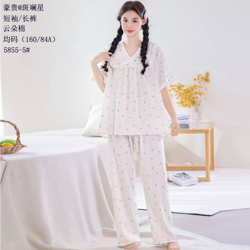 Hao Gui Yun Duo Cotton 반팔 바지 파자마 25 새로운 라운드 넥 패션 캐주얼 여성 풀오버 홈 의류스토어 가기