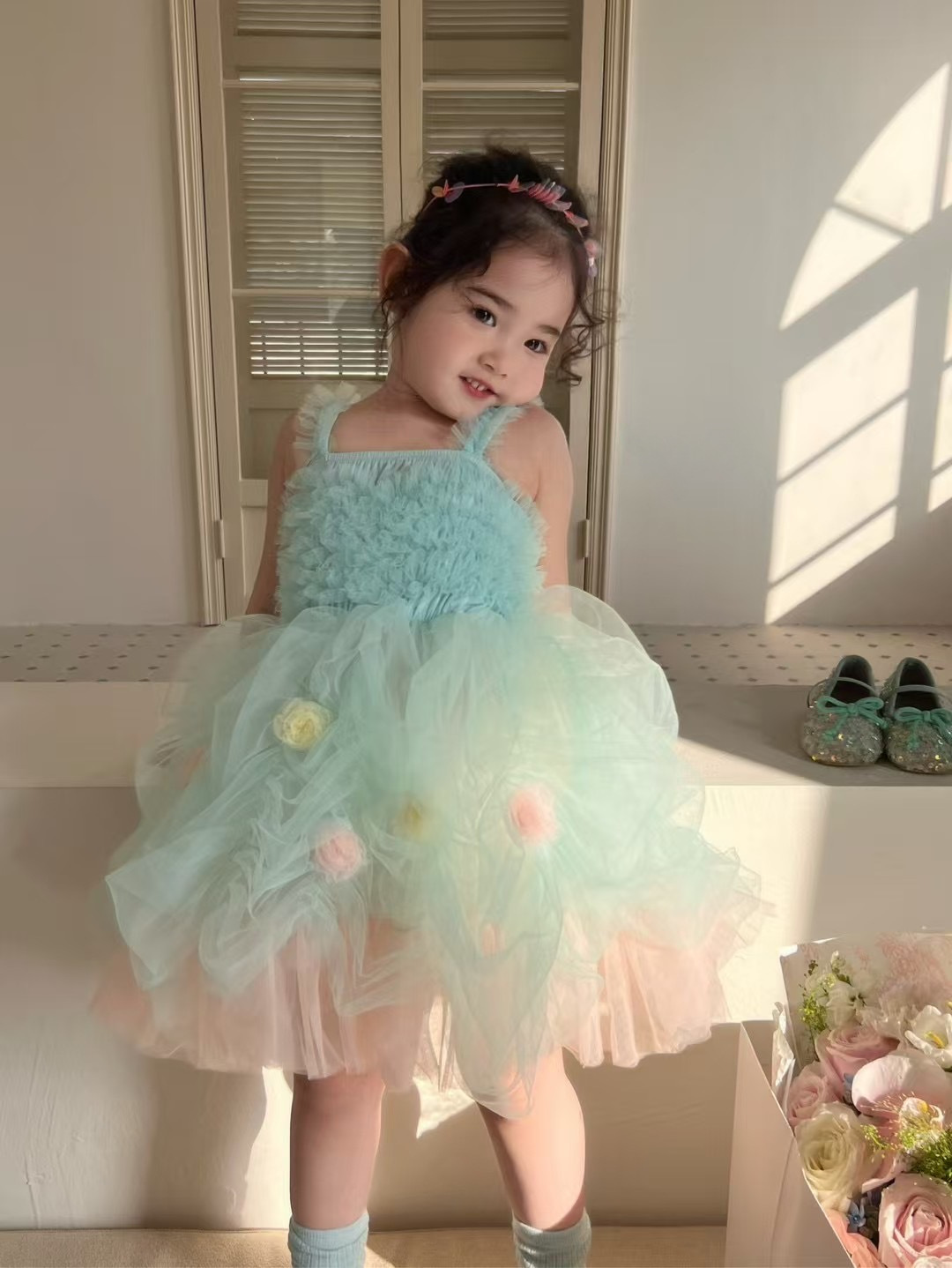소녀 스트랩 원피스 2025 새로운 여름 판초 케이크 스커트 꽃 어린이 스커트 어린이 서양식 공주