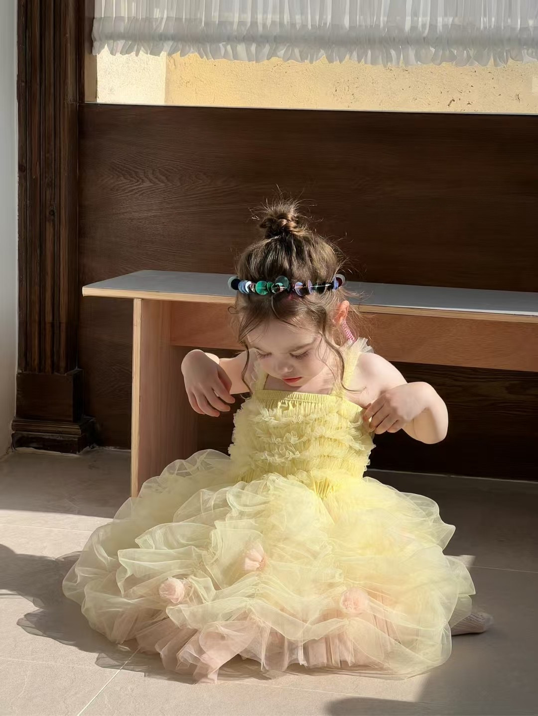 소녀 스트랩 원피스 2025 새로운 여름 판초 케이크 스커트 꽃 어린이 스커트 어린이 서양식 공주스토어 가기