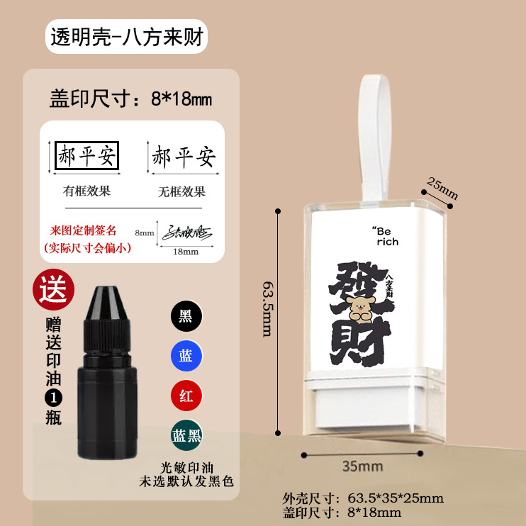 이름 성격 시그니처 씰 디자인 시그니처 이름 조각 만화 감광성 씰 프레스 휴대용 끈
