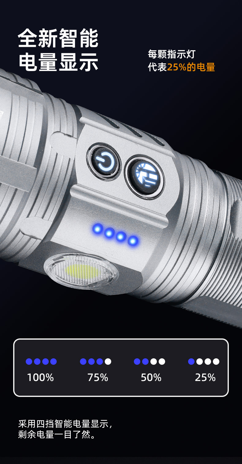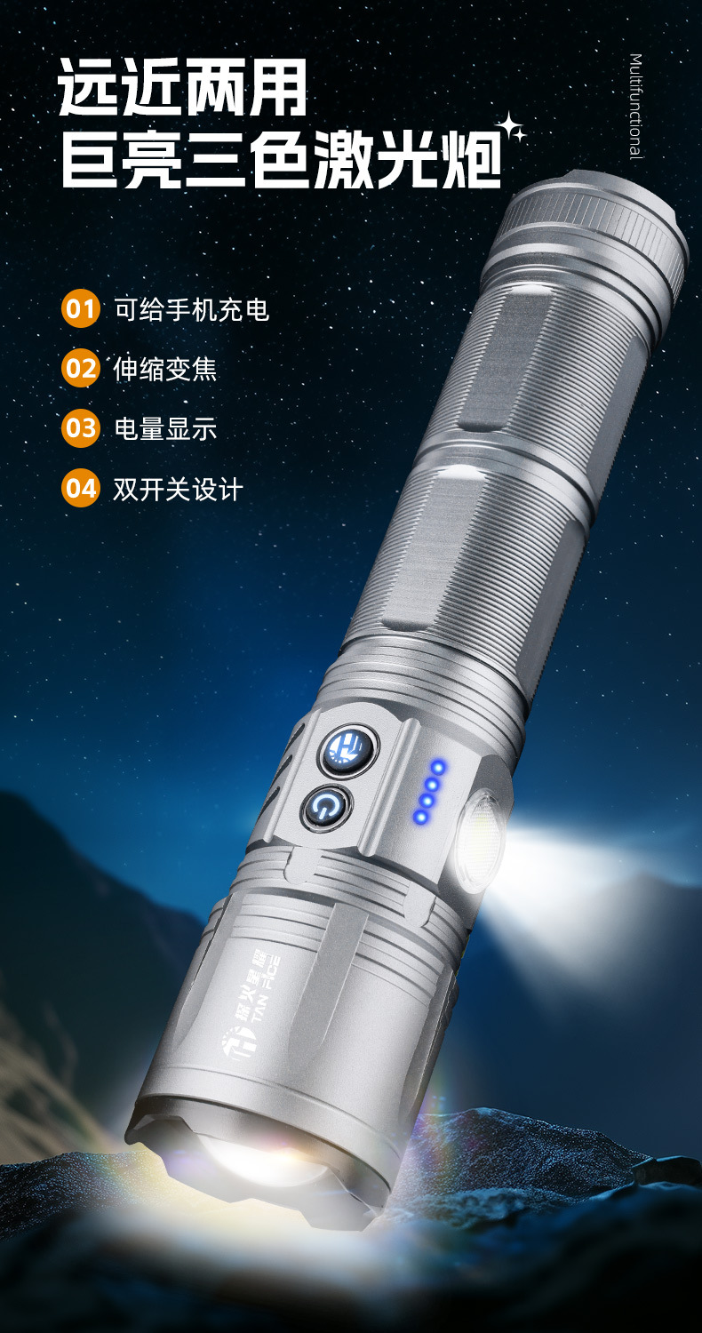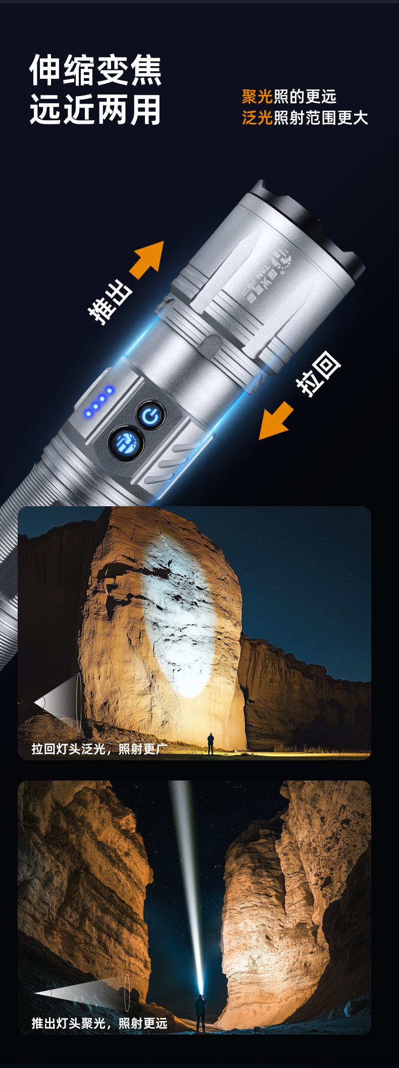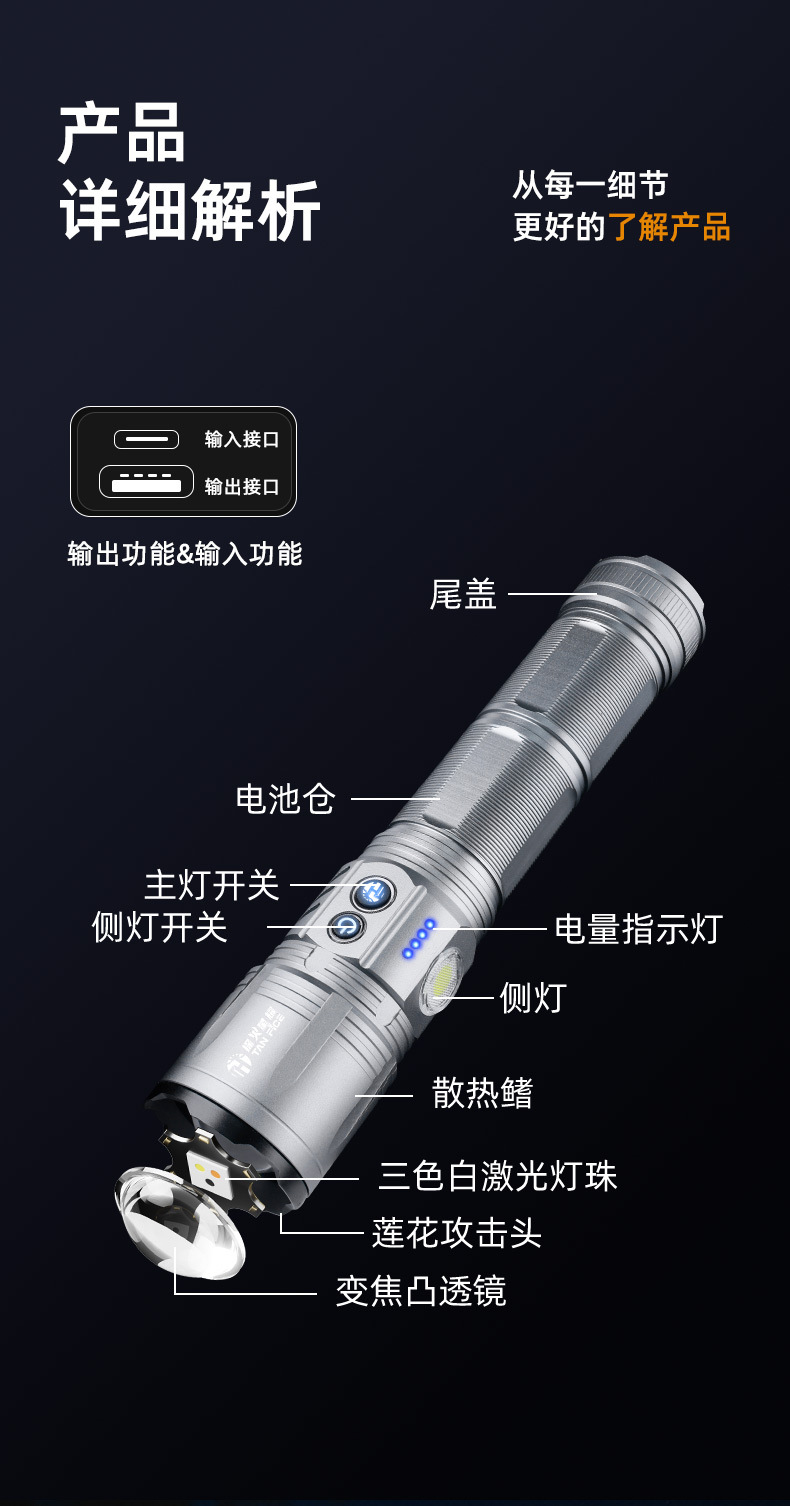 • D33 단일 손전등 + 두 섹션401350배터리 + 브래킷 + 테일 로프 + 충전 케이블