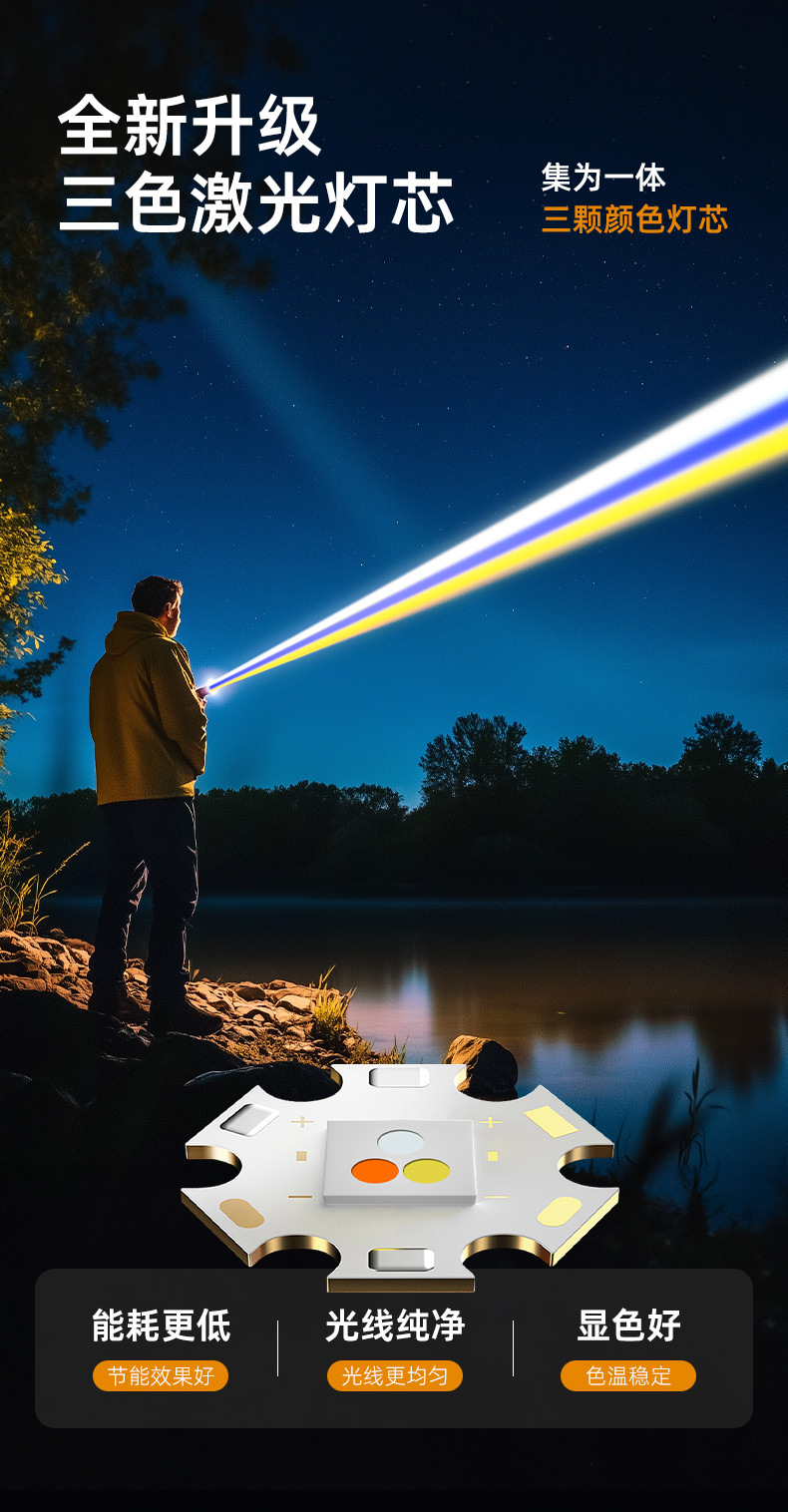 강한 빛과 3개의 심지, 매우 긴 배터리 수명을 갖춘 야외 휴대용 손전등, 다기능 충전식 COB 작업등