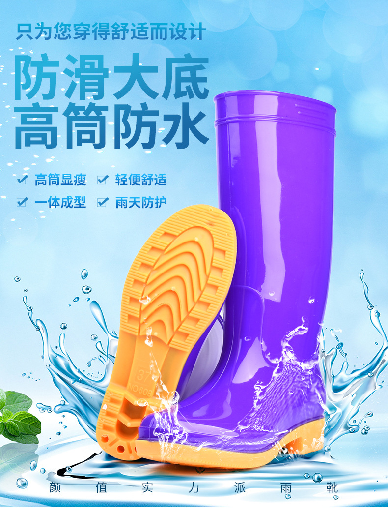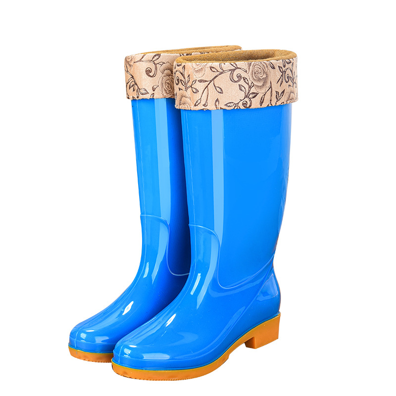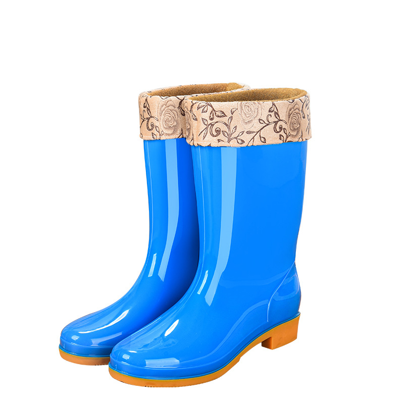 모란무늬 하이탑 워터부츠, 벨벳 워터슈즈, 따뜻한 장화, 하이탑 장화, 여성용 작업고무신, 덧신, 노동보호화스토어 가기