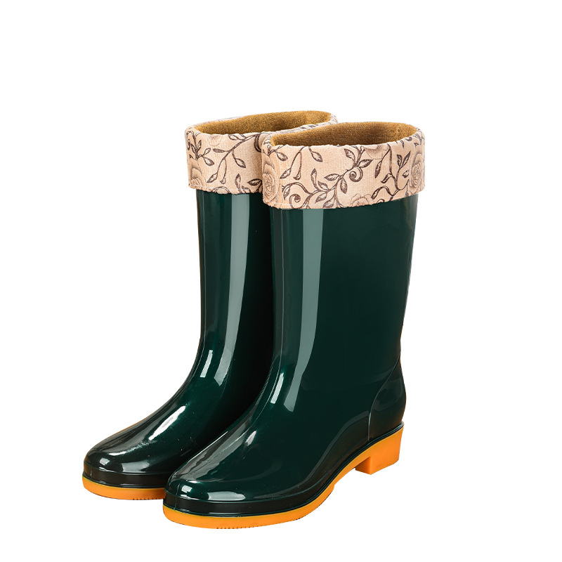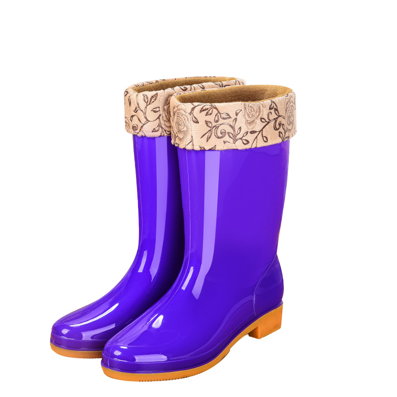 모란무늬 하이탑 워터부츠, 벨벳 워터슈즈, 따뜻한 장화, 하이탑 장화, 여성용 작업고무신, 덧신, 노동보호화