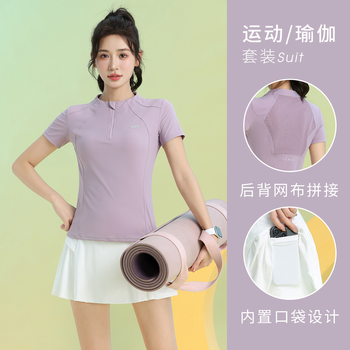 스포츠 세트 여자 2025 피트니스 통기성 전문 여성 요가 옷 패션 세련된 짧은 소매 테니스 달리기 빠른 건조 옷스토어 가기