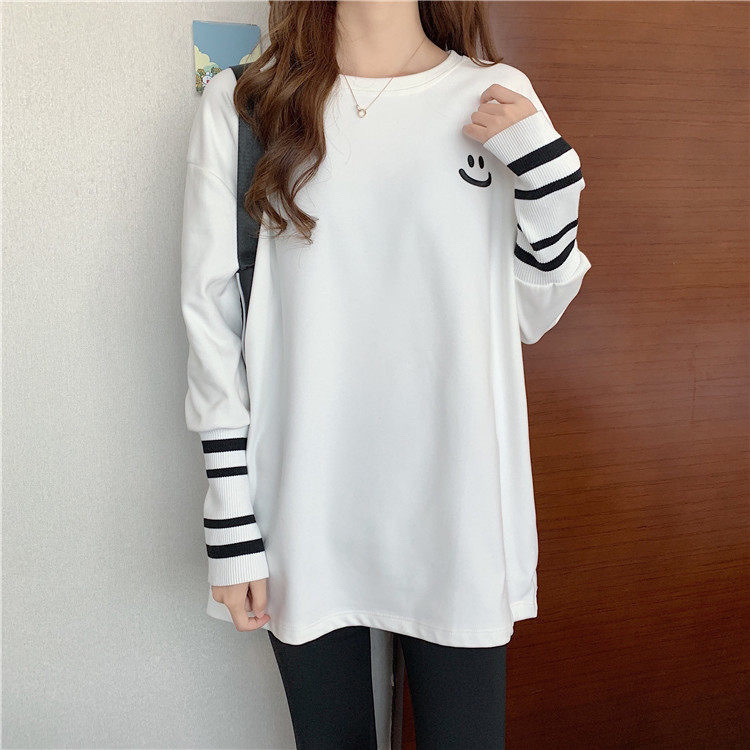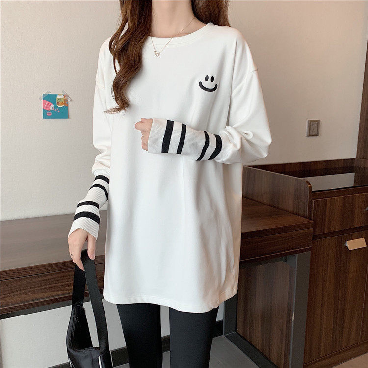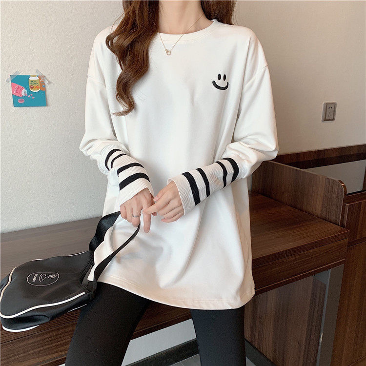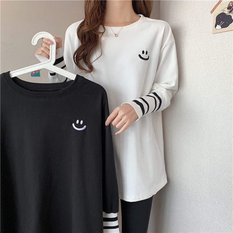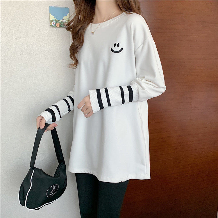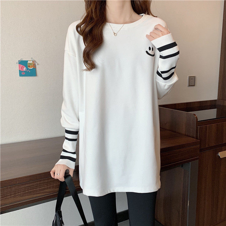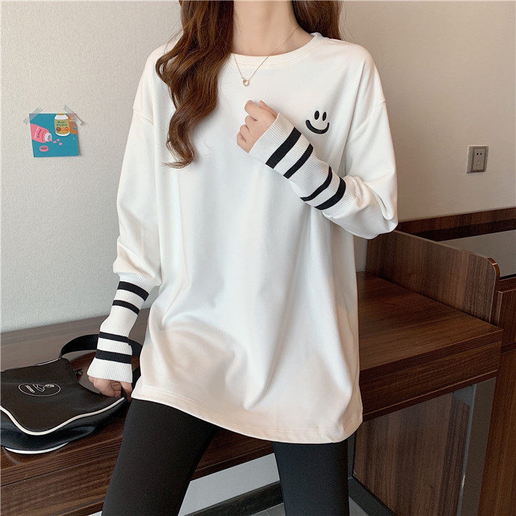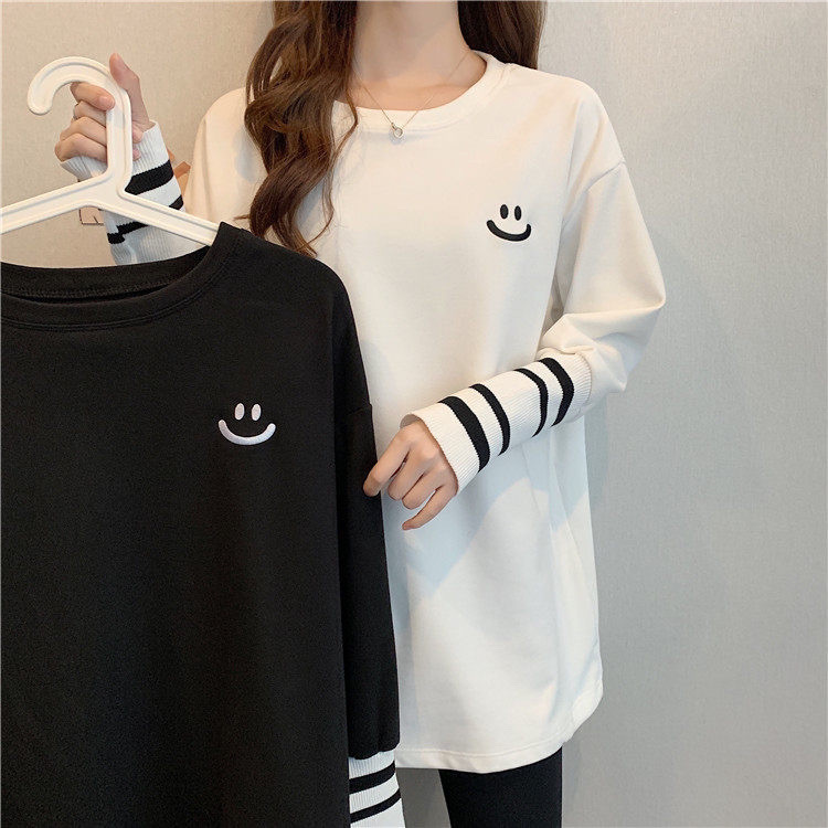 가을, 겨울 한국어 버전 2023 새로운 디자인 느슨한 중간 길이 두꺼운 자수 바닥 긴팔 티셔츠 탑 여성용스토어 가기