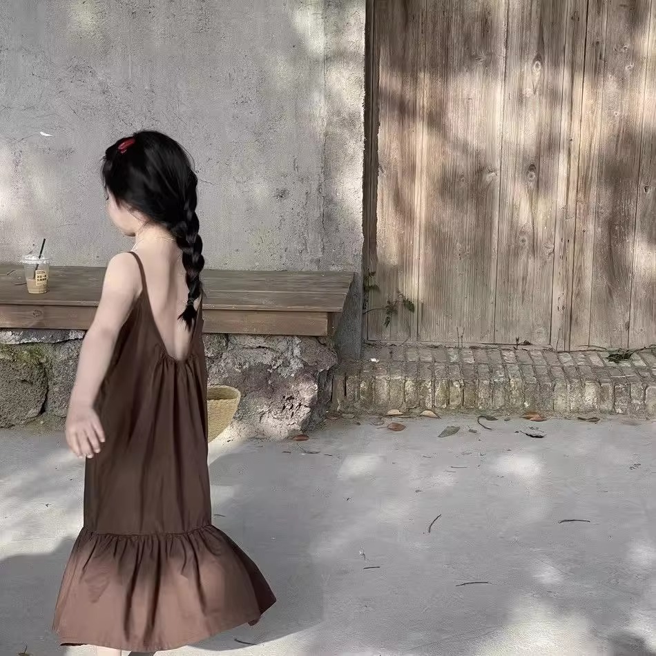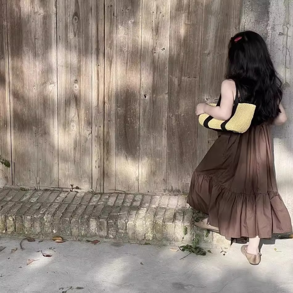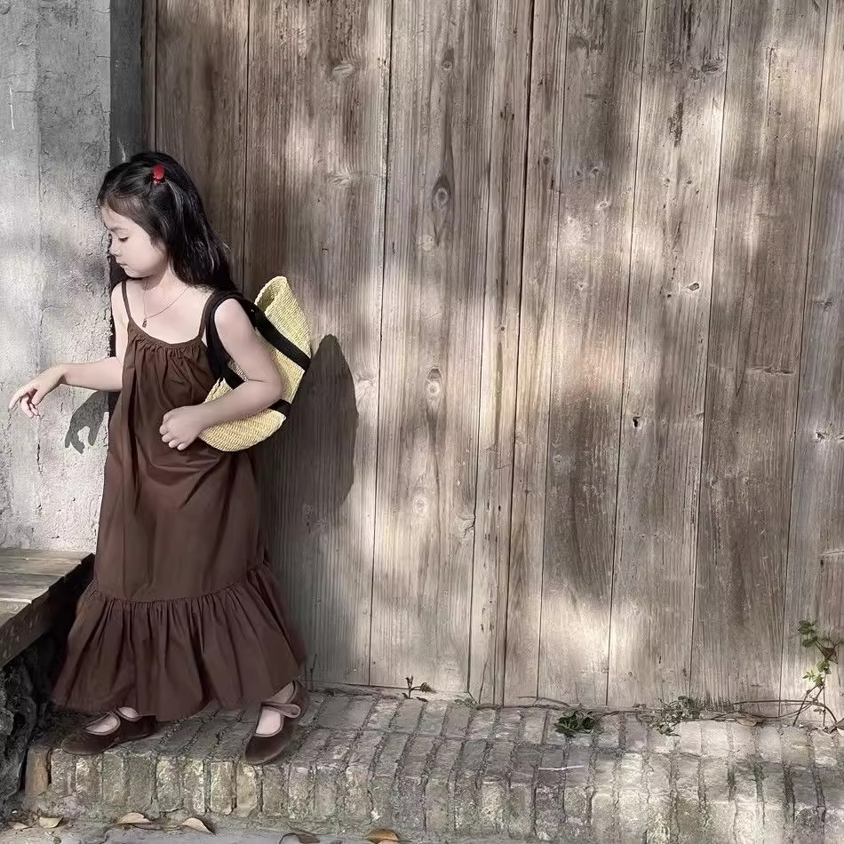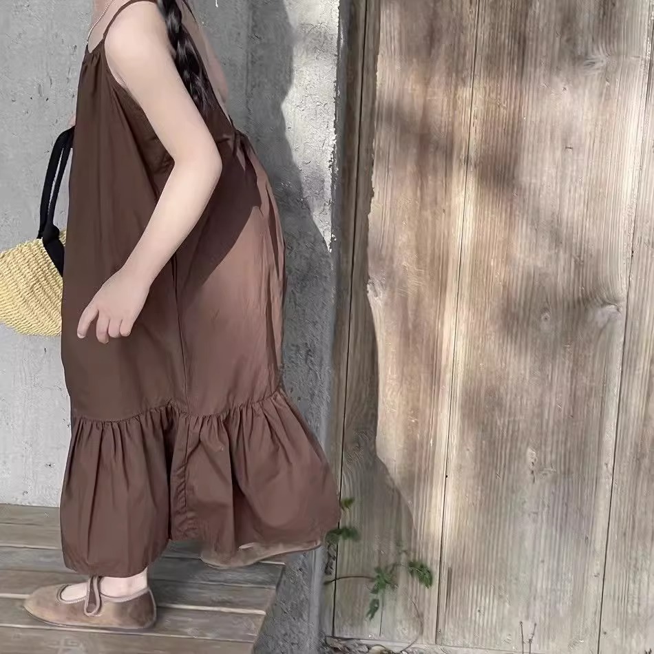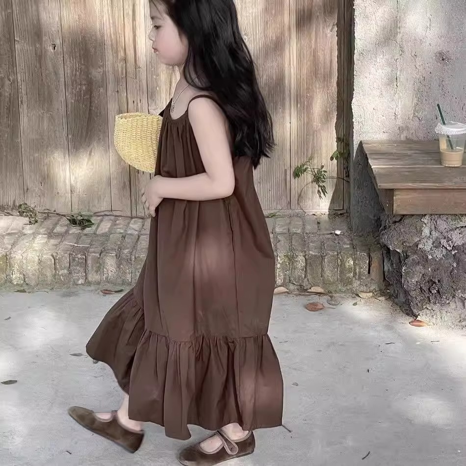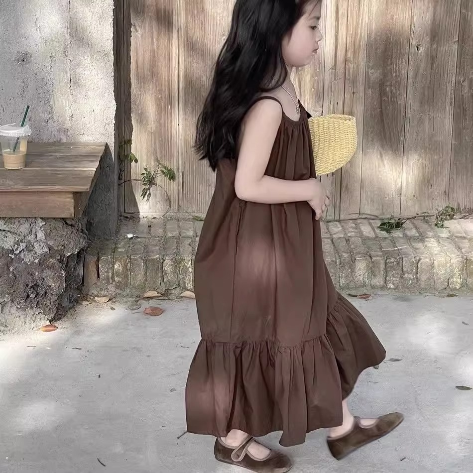 한국 스타일 소녀 서스펜더 스커트 여름 아기 소녀 기질 조끼 드레스 어린이 해변 휴가 해변 드레스 여름