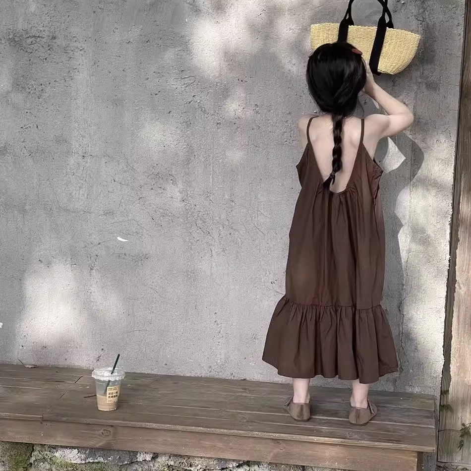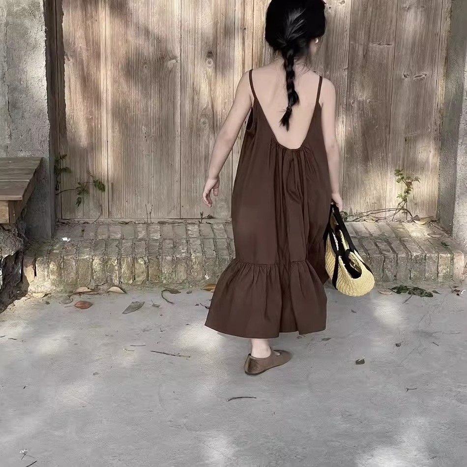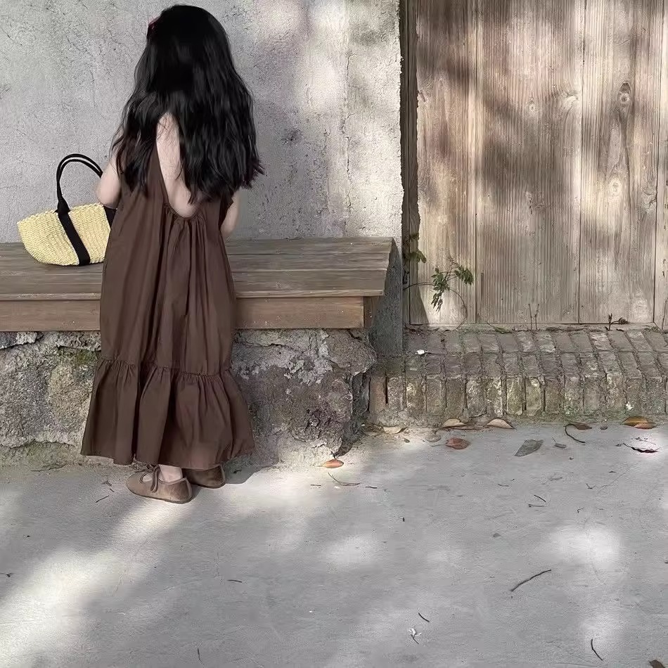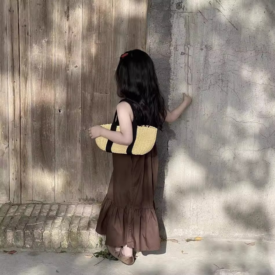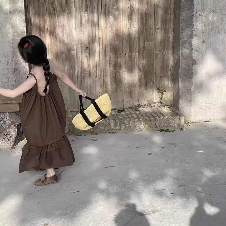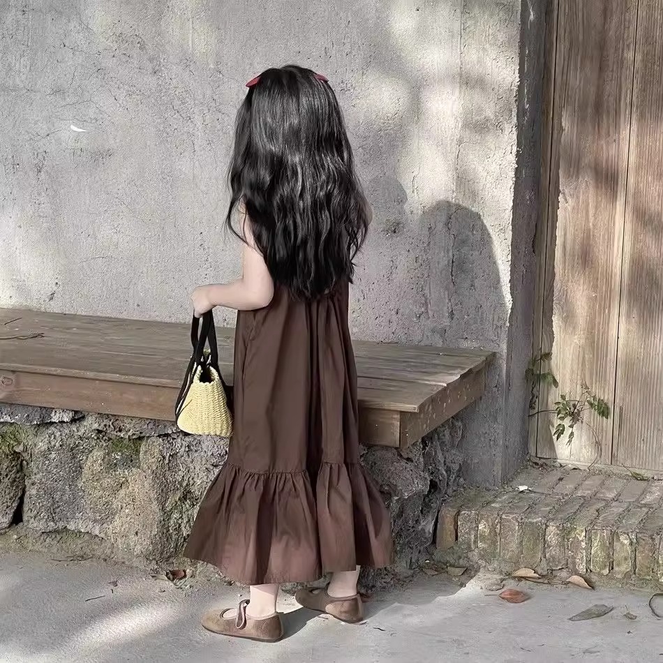한국 스타일 소녀 서스펜더 스커트 여름 아기 소녀 기질 조끼 드레스 어린이 해변 휴가 해변 드레스 여름