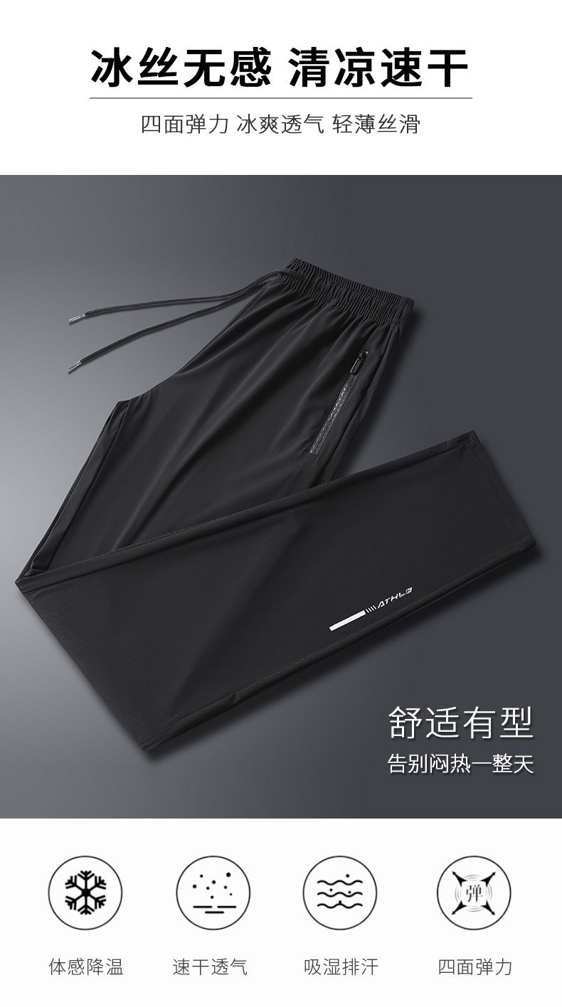 여름 야외 스포츠 빠른 건조 아이스 실크 남성용 바지 초박형 통기성 땀 흡수성 캐주얼 러닝 스포츠 피트니스 바지스토어 가기