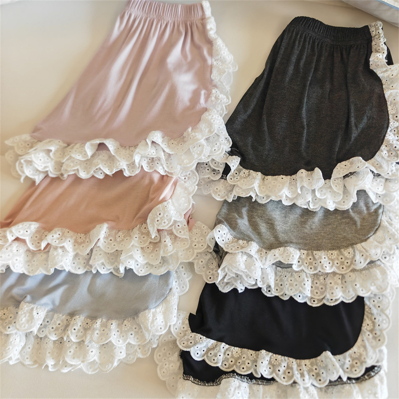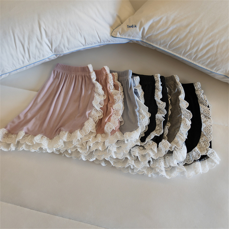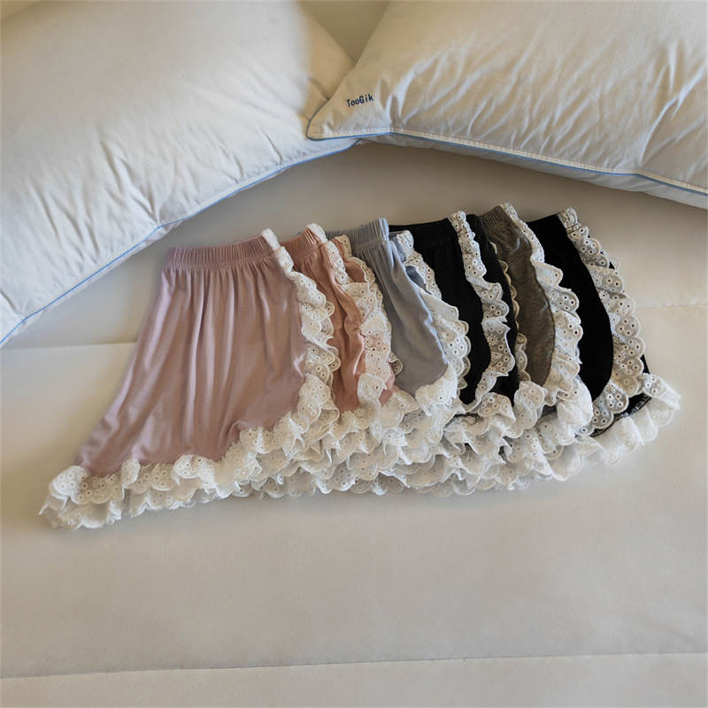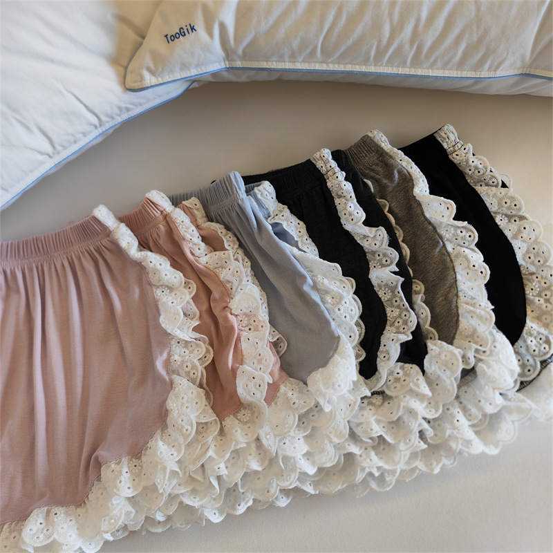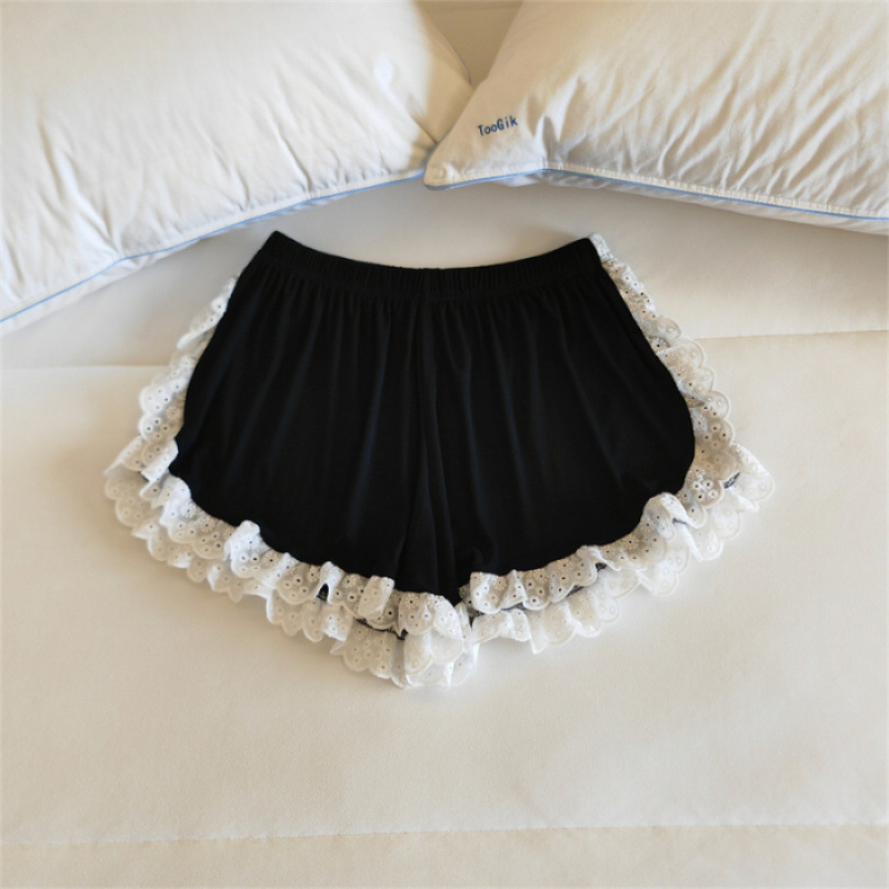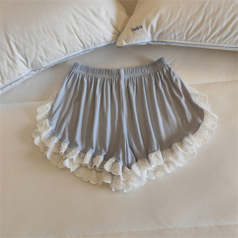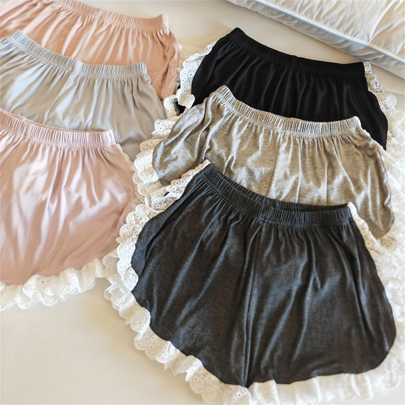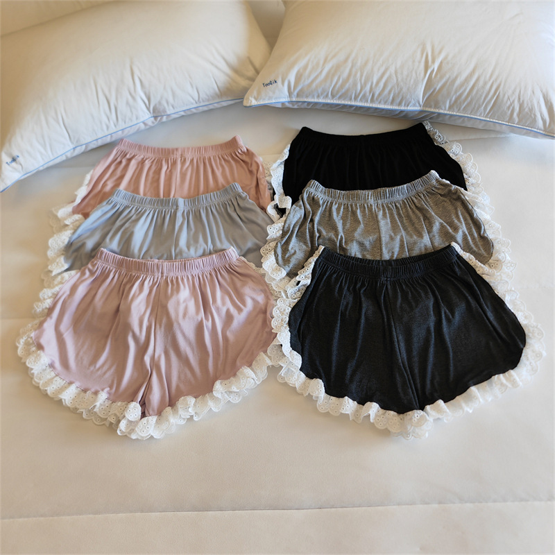 모달 파자마팬츠 여성용 3373 # 외부에 단색 바닥을 착용할 수 있는 얇은 미드 로우 웨이스트 레이스 홈 반바지