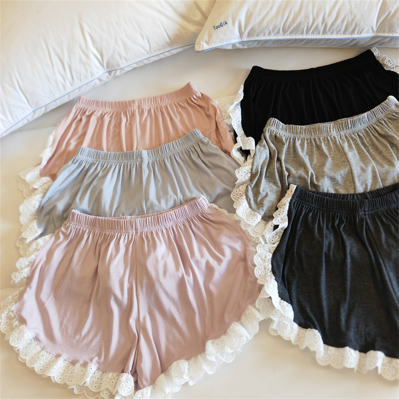 모달 파자마팬츠 여성용 3373 # 외부에 단색 바닥을 착용할 수 있는 얇은 미드 로우 웨이스트 레이스 홈 반바지스토어 가기