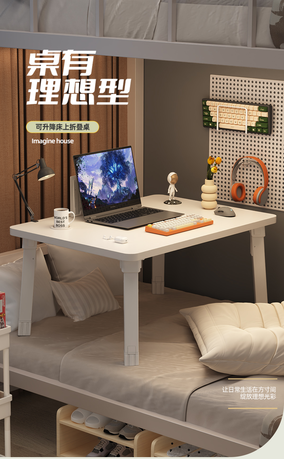 대형 접이식 침대 컴퓨터 책상 기숙사 이층 학생 학습 테이블 베드룸 노트북 사무실 작은 테이블