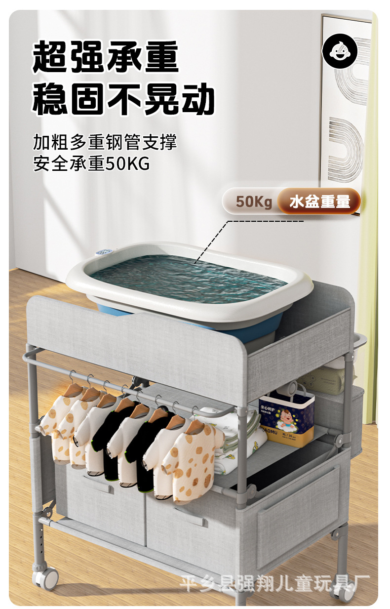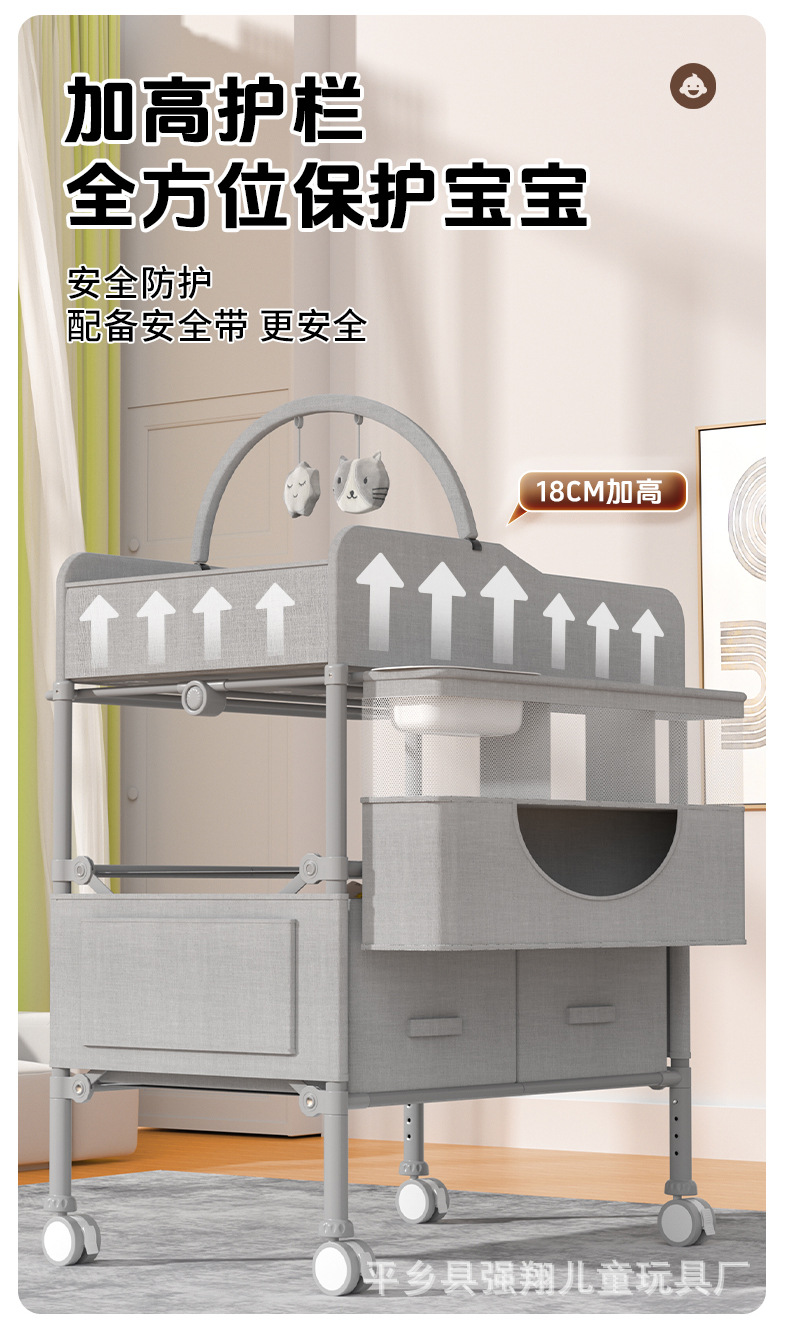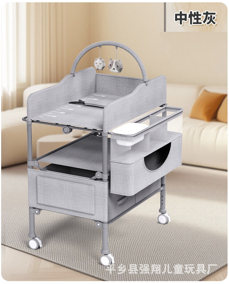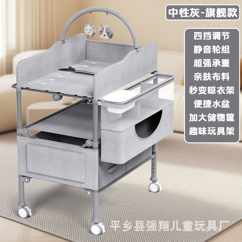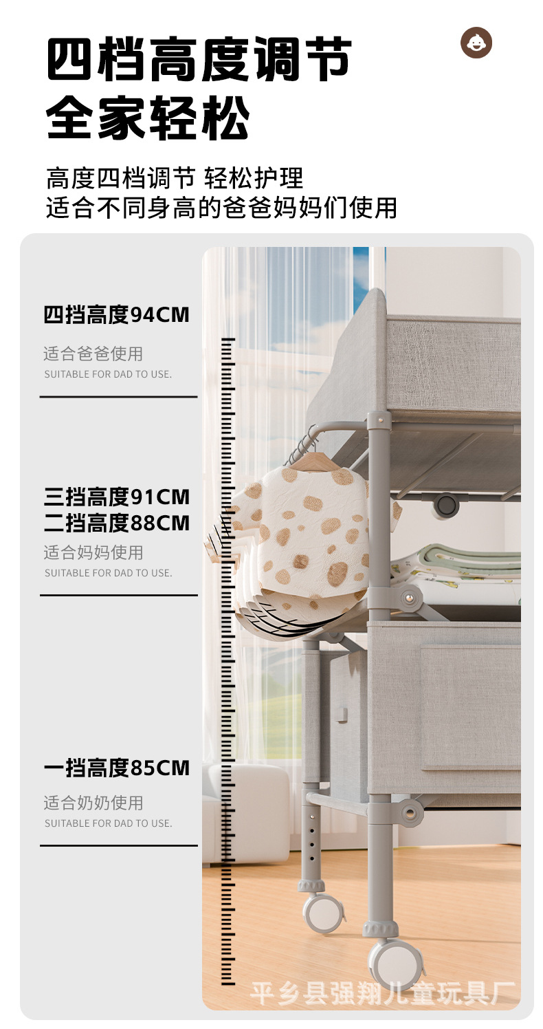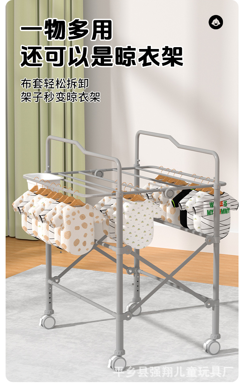• 뉴트럴 그레이 플래그십 모델 [골격 지지대 + 4단 조절 + 이중 수납 바구니 + 범용 바퀴 + 수납 바구니 2개 + 장난감 선반 + 작은 물통] 리넨