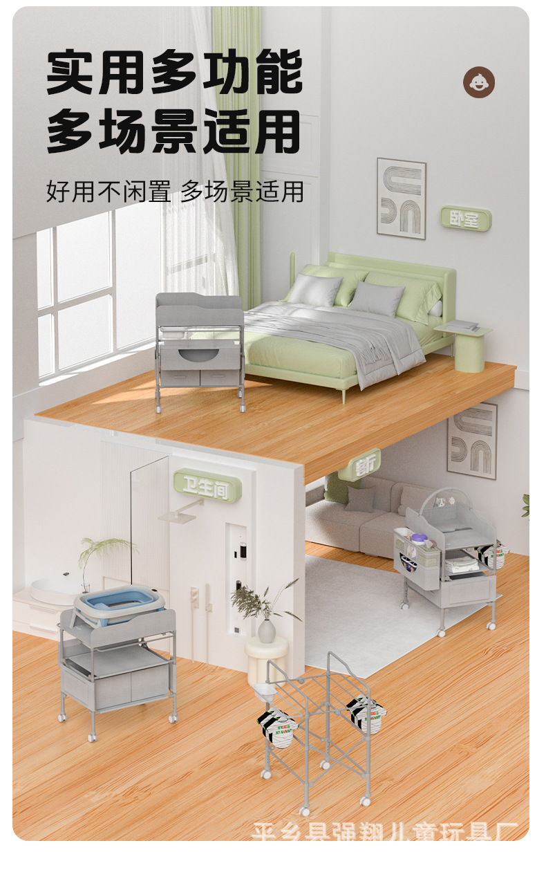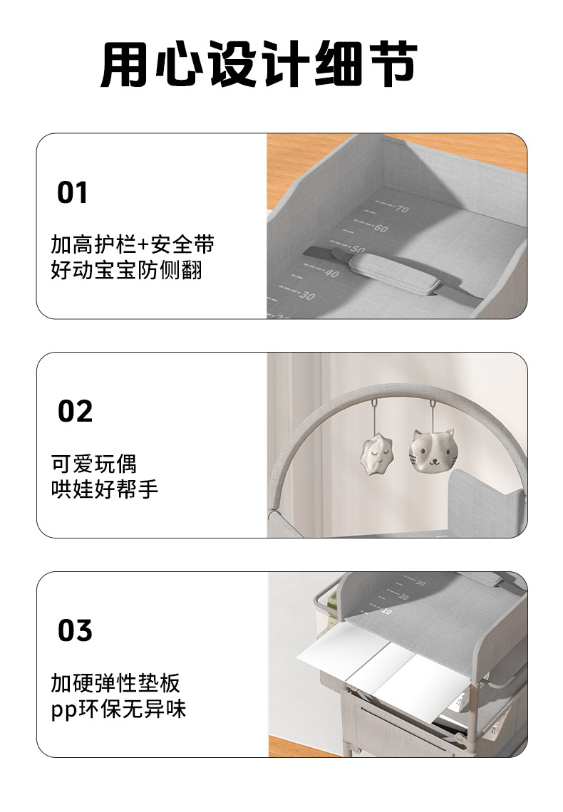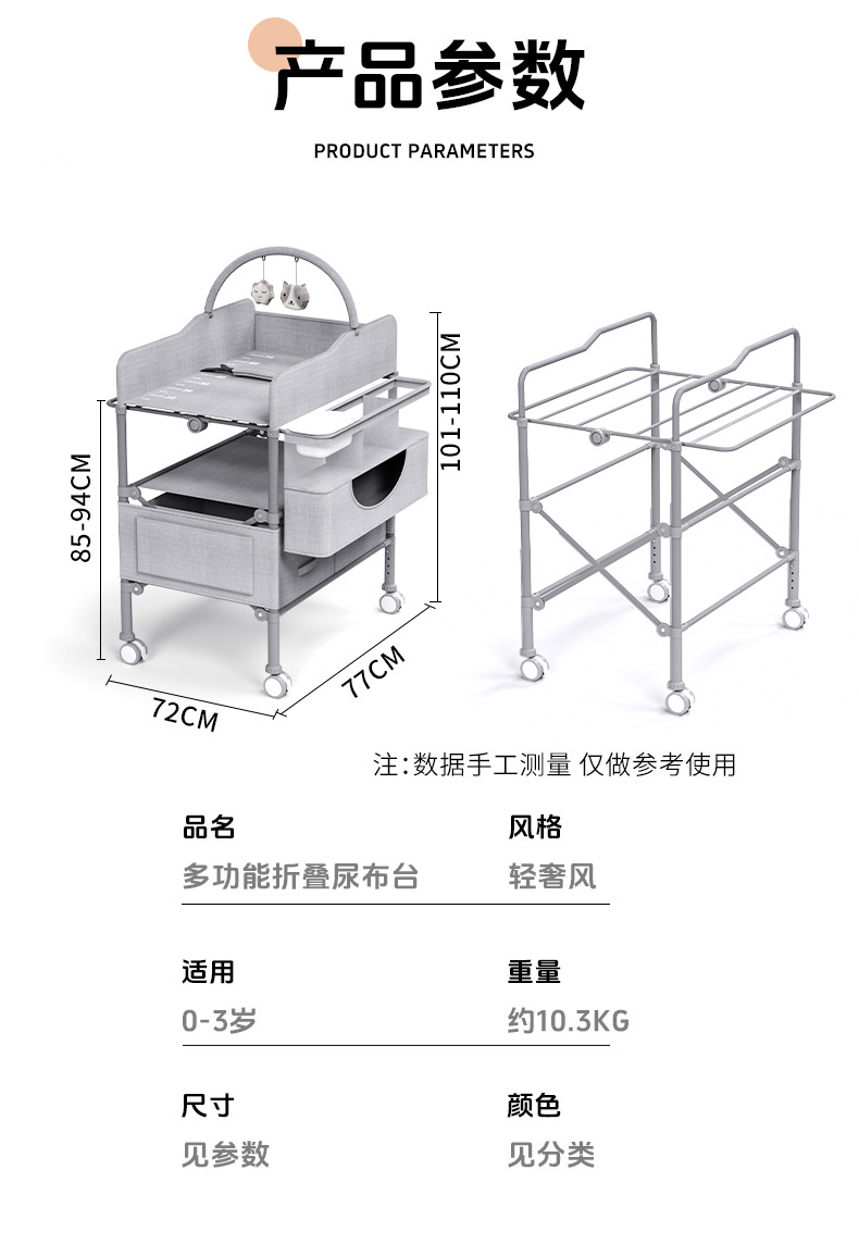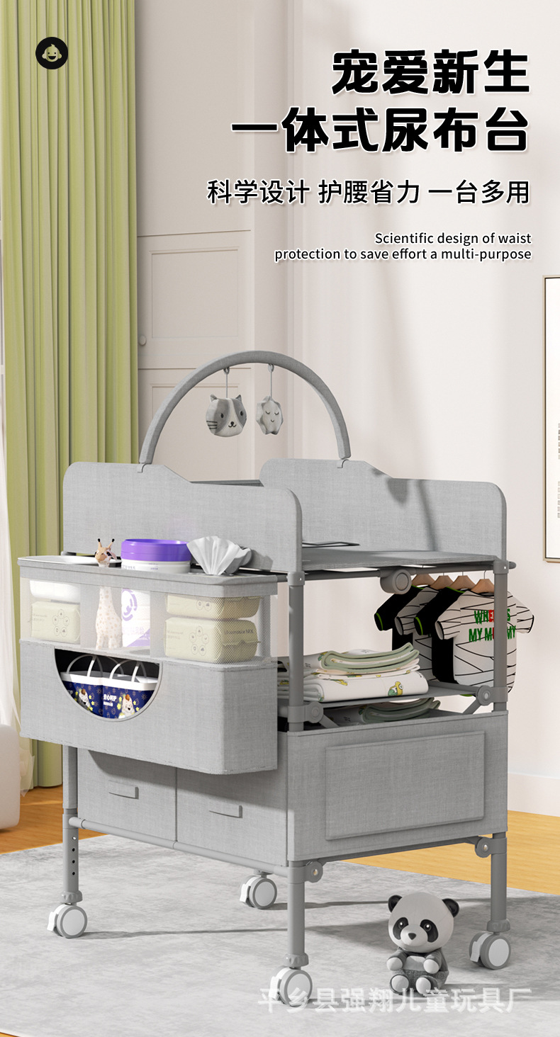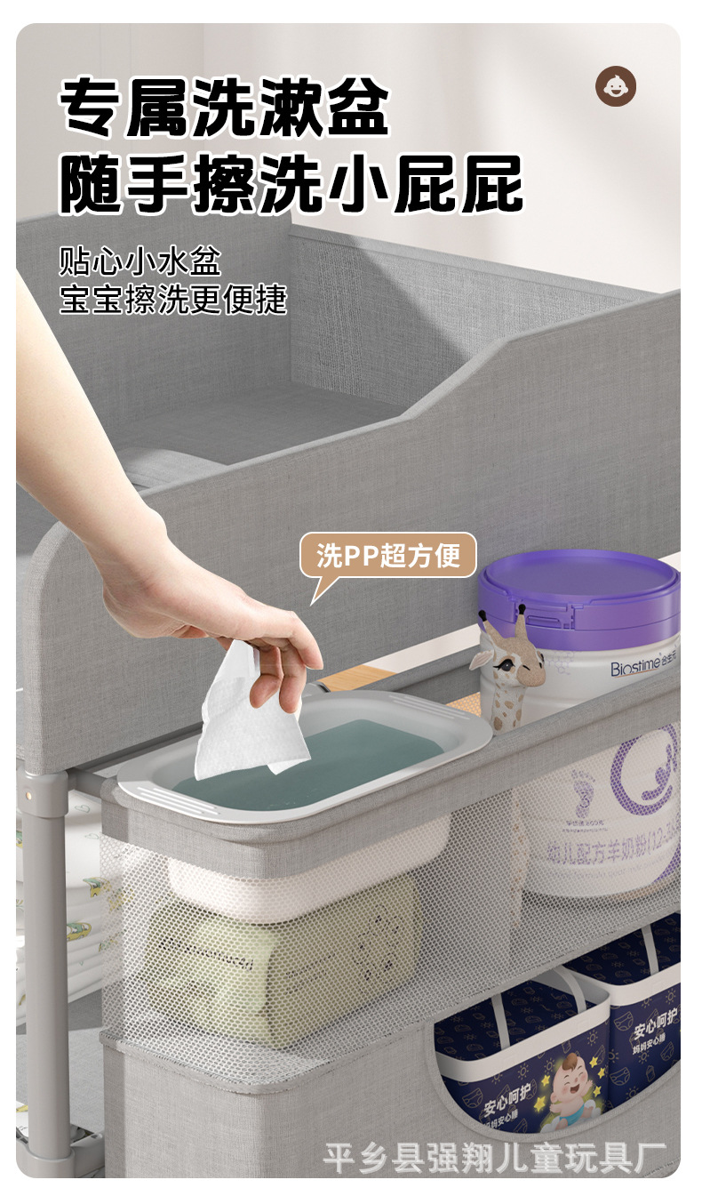 • 뉴트럴 그레이 플래그십 모델 [골격 지지대 + 4단 조절 + 이중 수납 바구니 + 범용 바퀴 + 수납 바구니 2개 + 장난감 선반 + 작은 물통] 리넨
