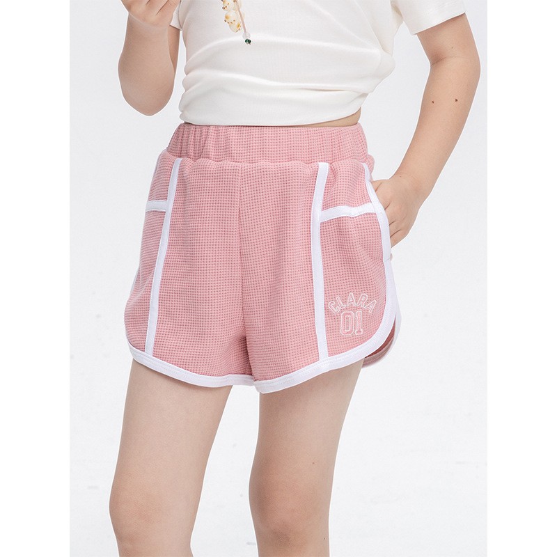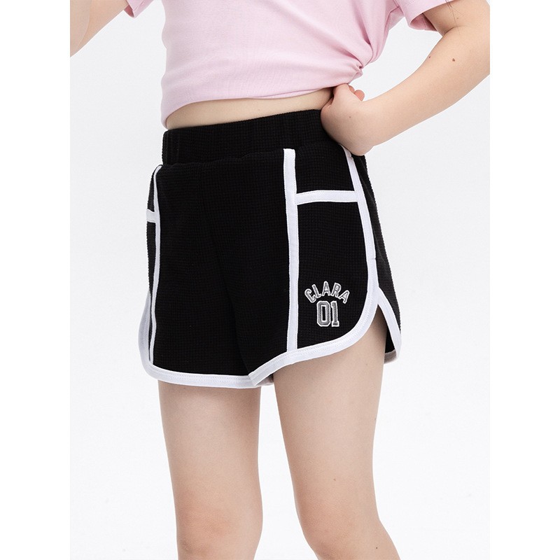 소녀 스포츠 반바지 2025 여름 새로운 어린이 미국 스타일 트렌디 브랜드 대비 컬러 캐주얼 바지 대형 어린이 느슨한 와이드 레그 바지스토어 가기