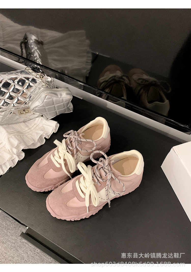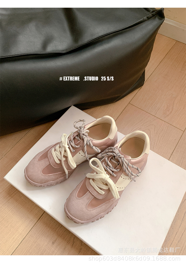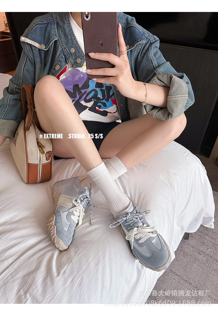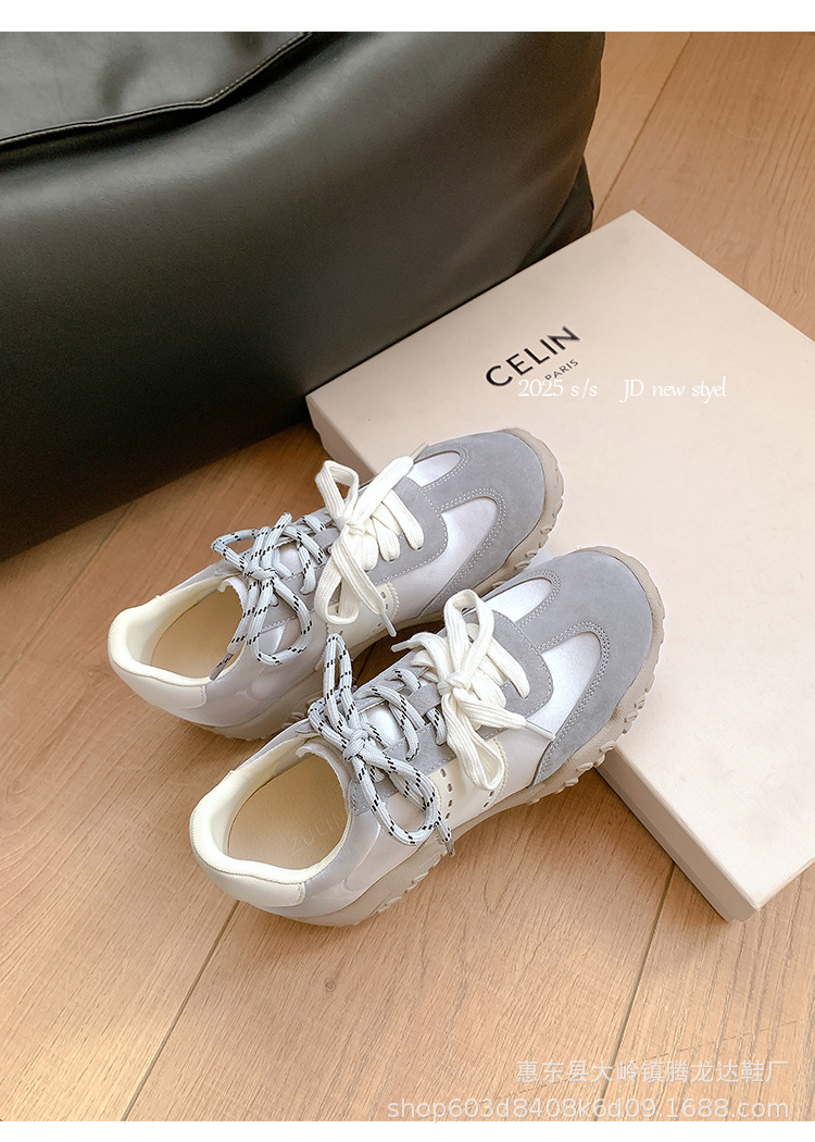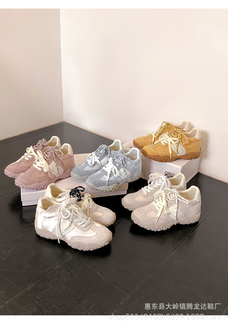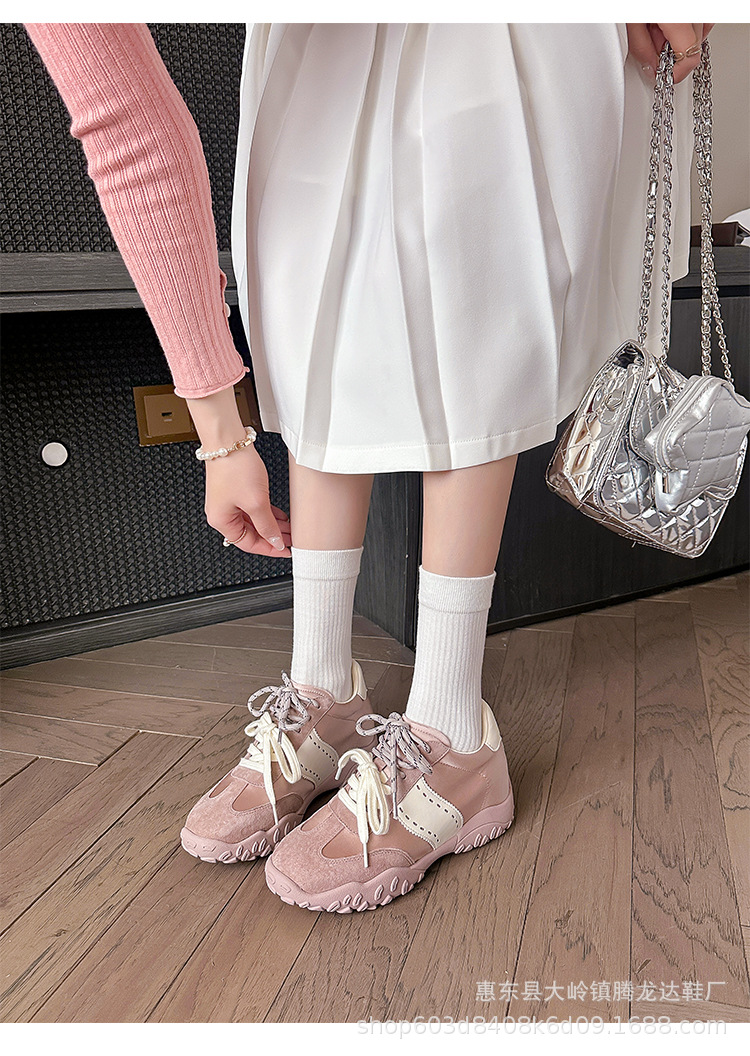 8cm 키높이 가죽 데트린 슈즈 여성용 2025 신상 진주 레이스 신발끈 스포츠 캐주얼 아가니 슈즈 여성용스토어 가기