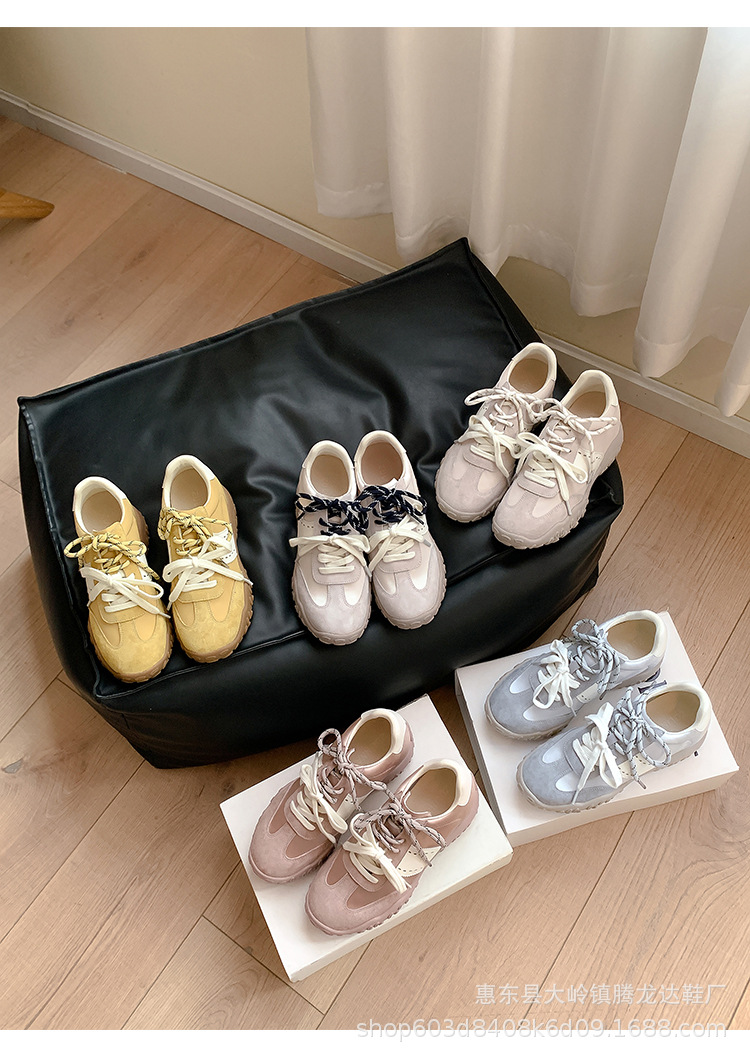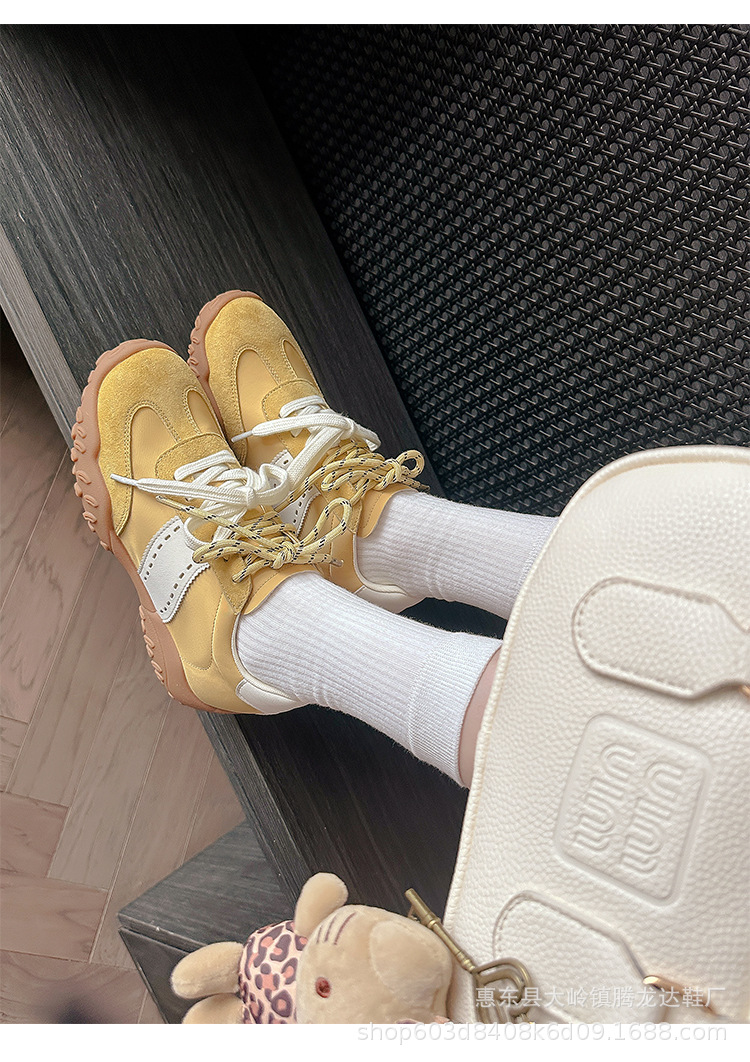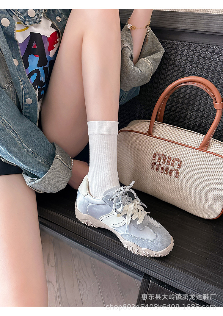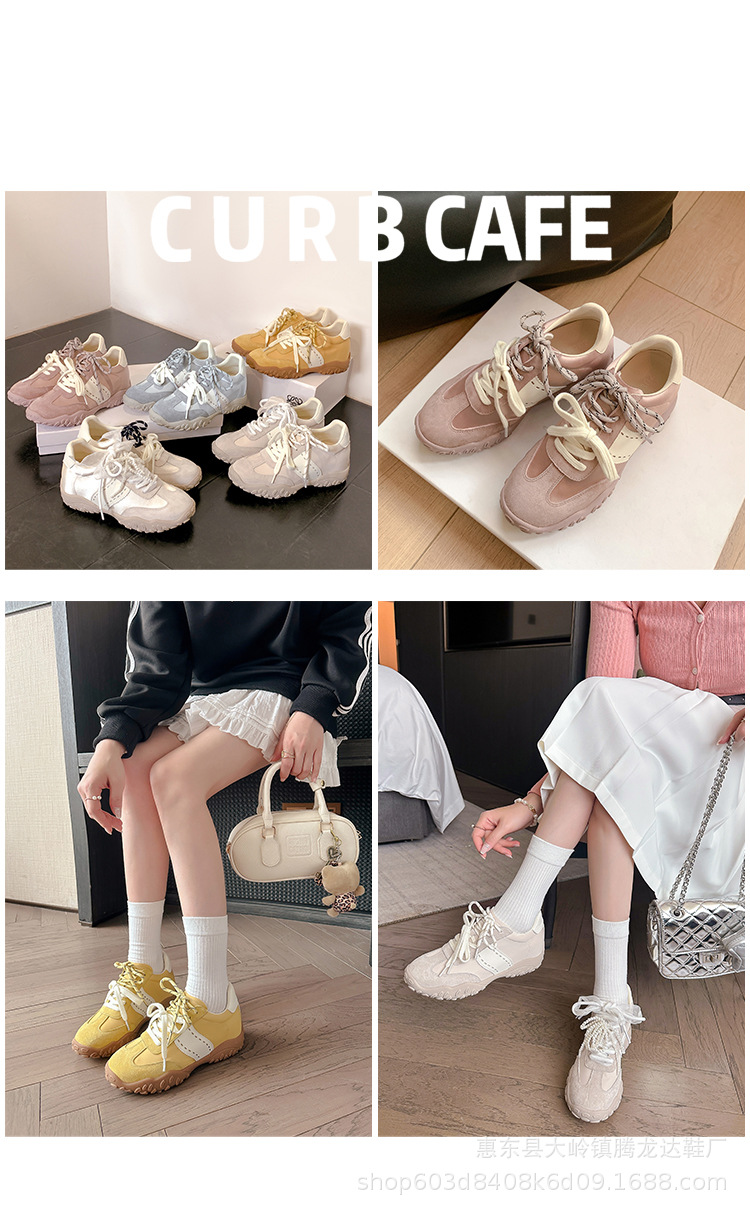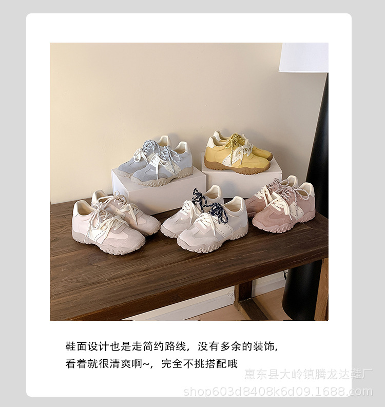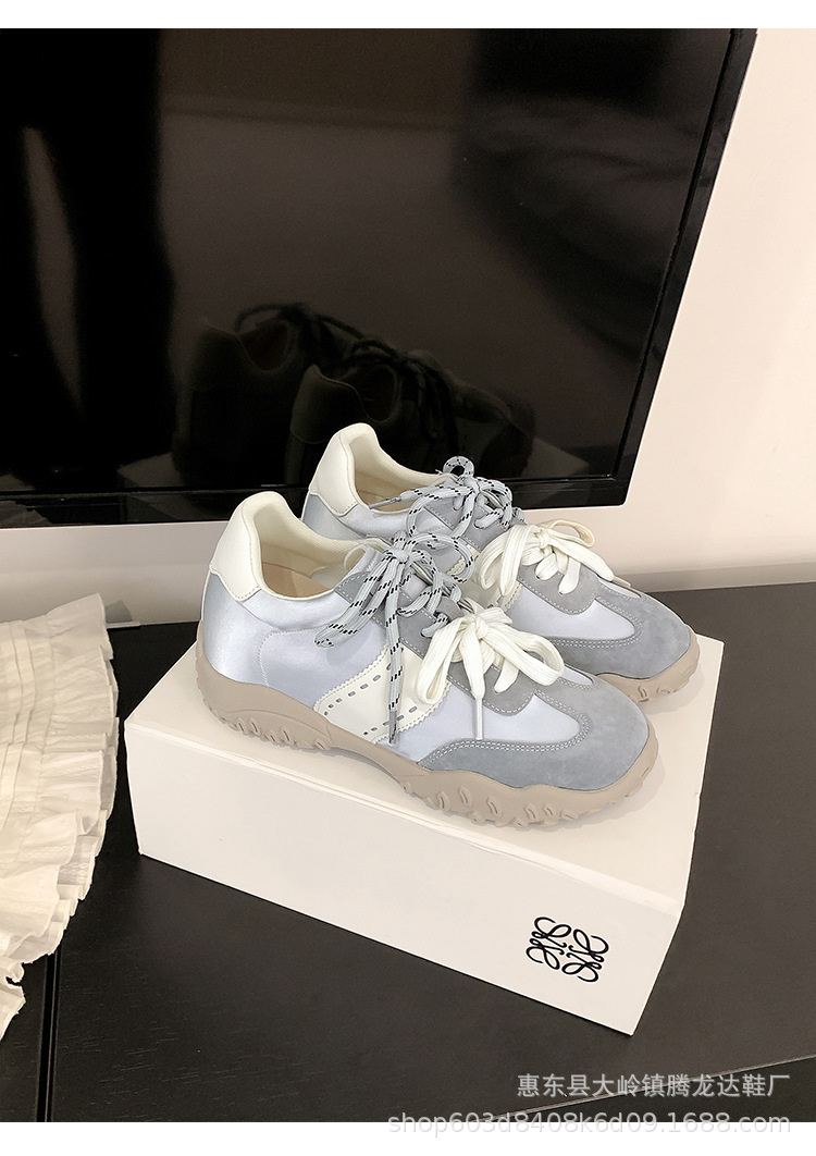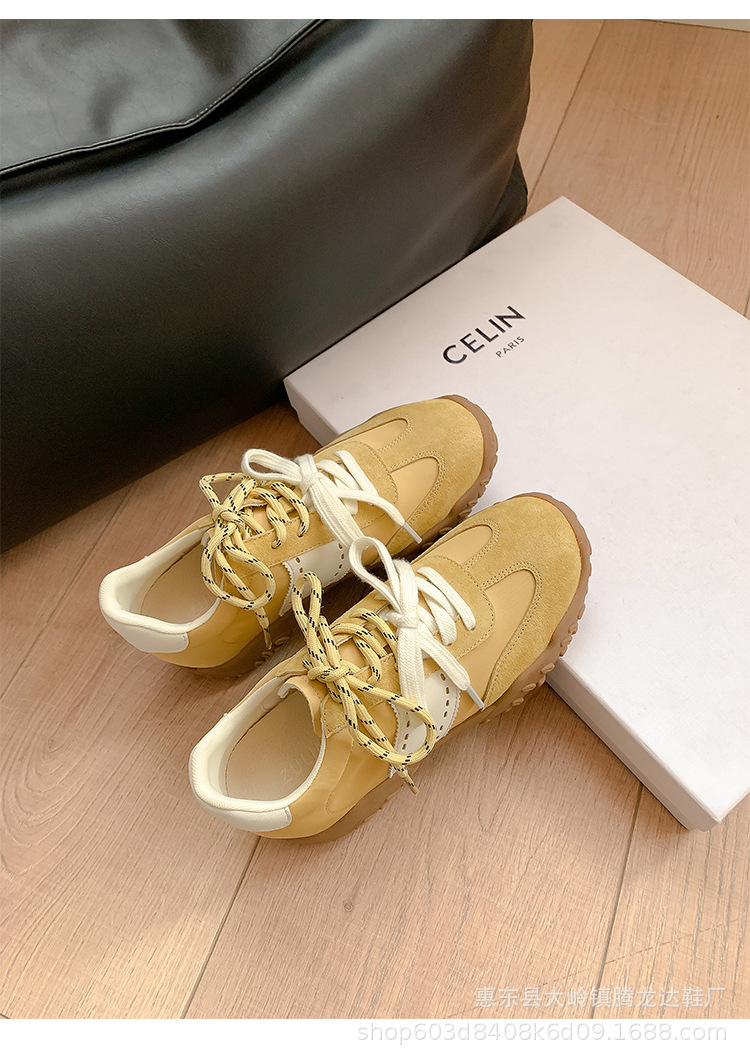 8cm 키높이 가죽 데트린 슈즈 여성용 2025 신상 진주 레이스 신발끈 스포츠 캐주얼 아가니 슈즈 여성용스토어 가기