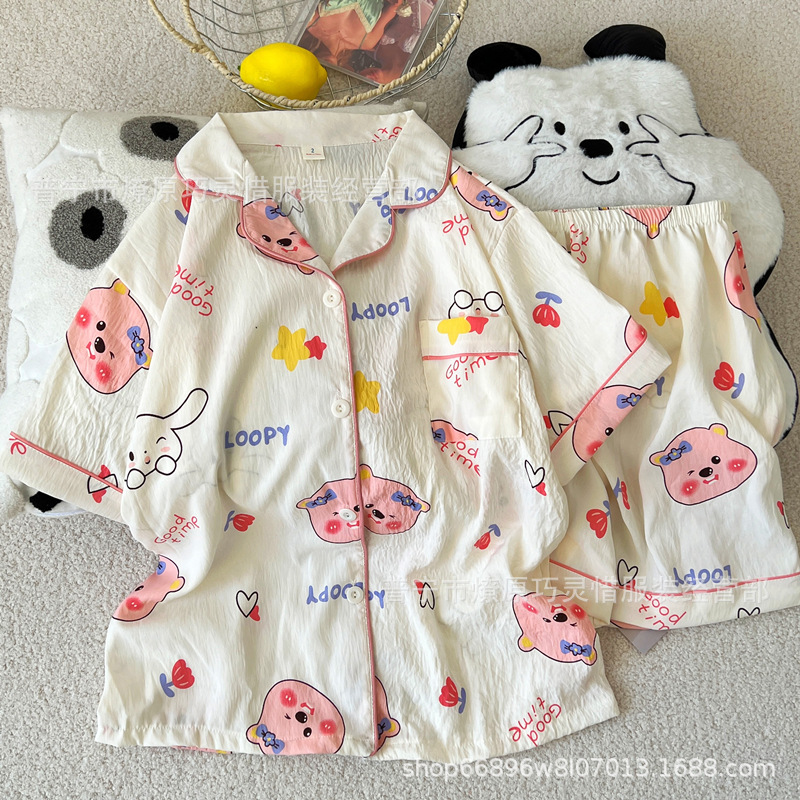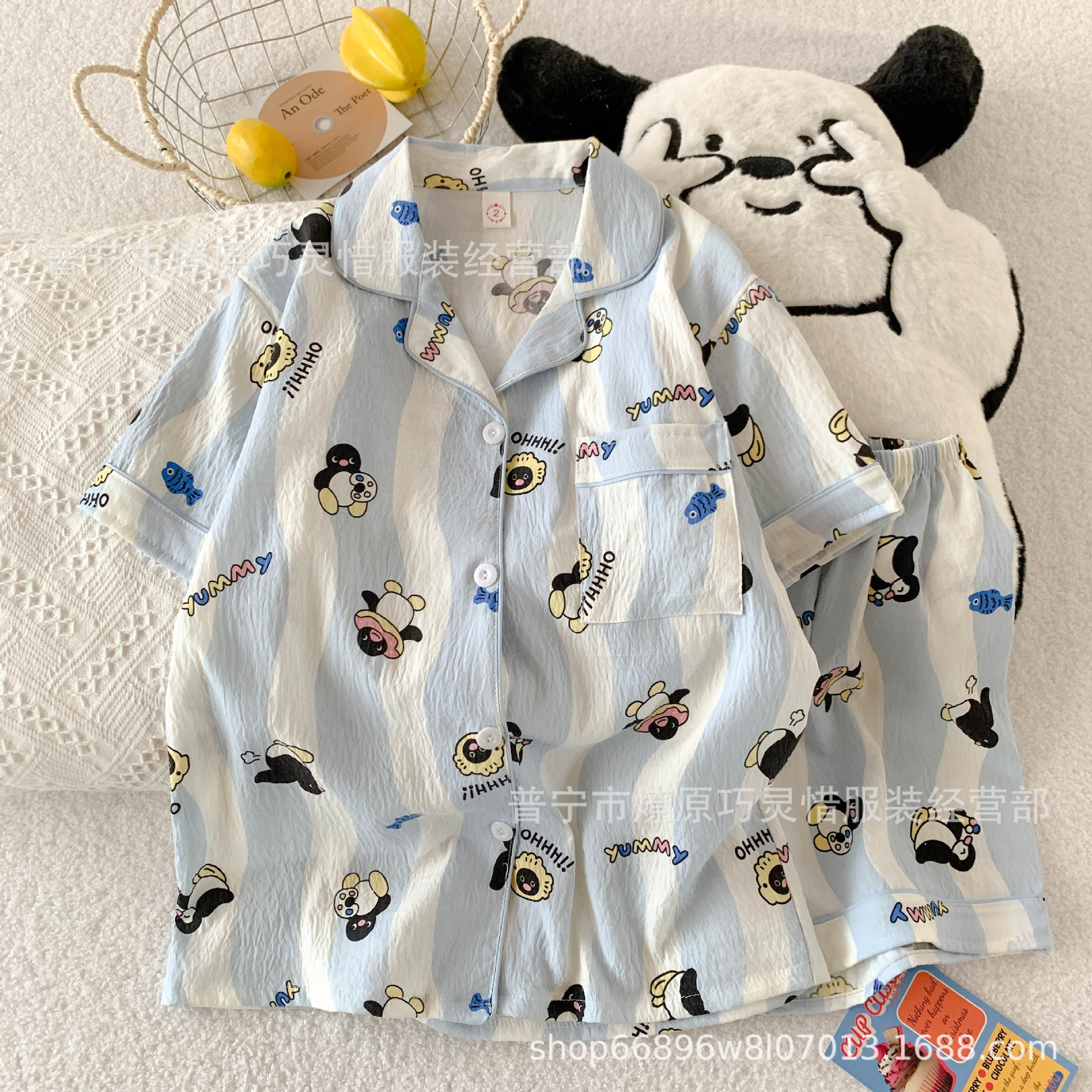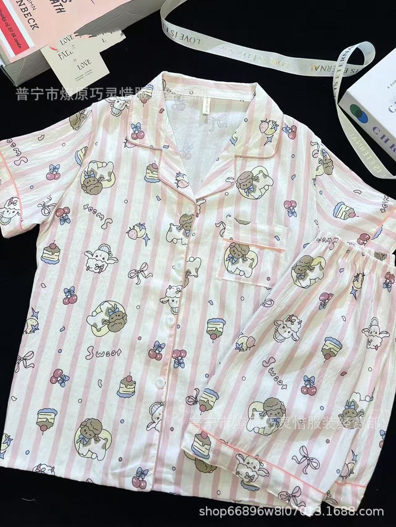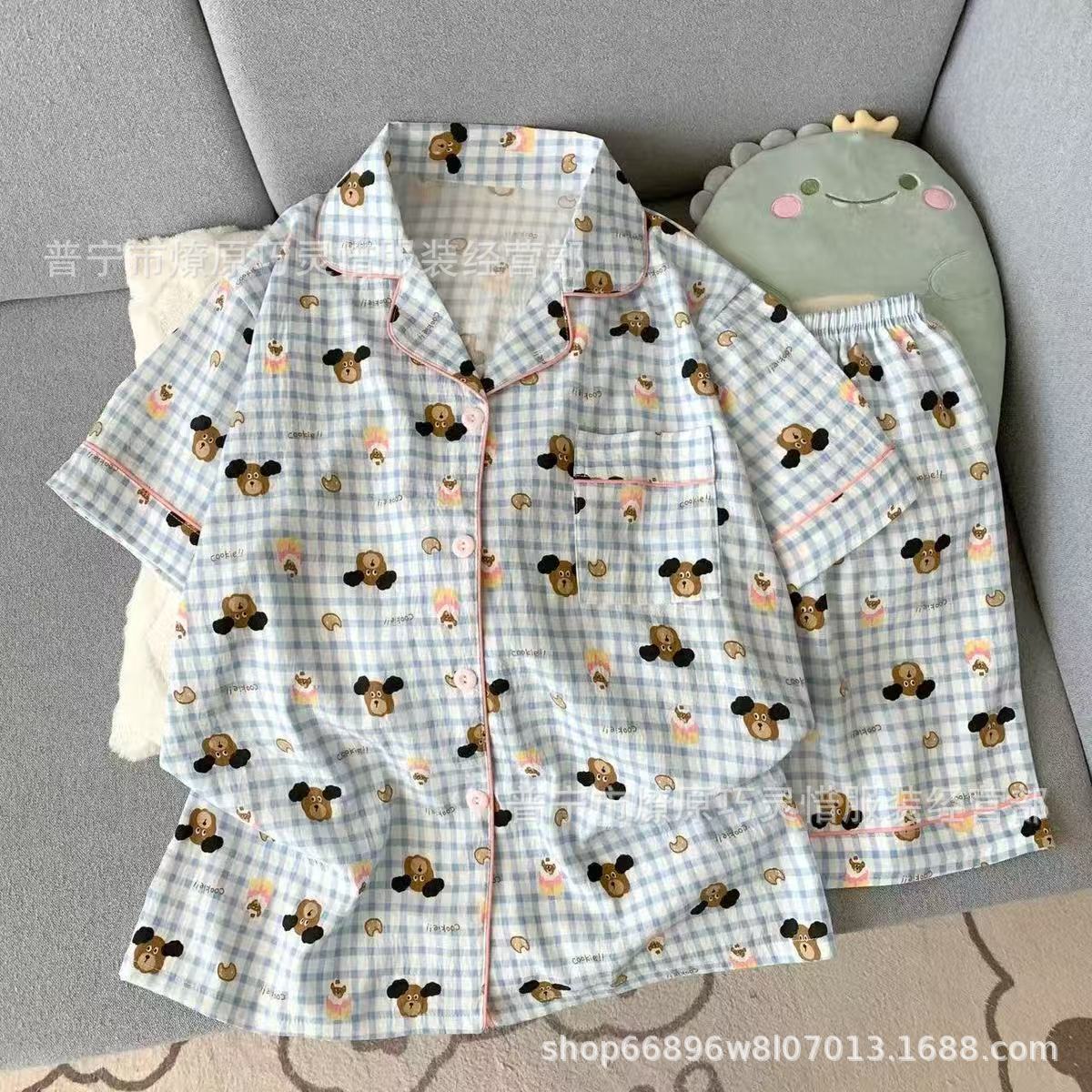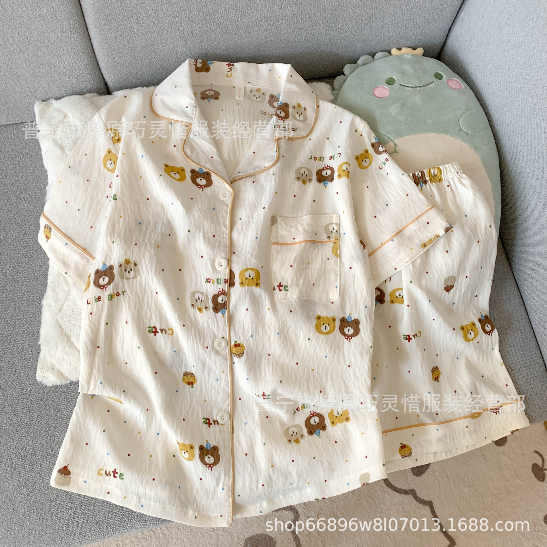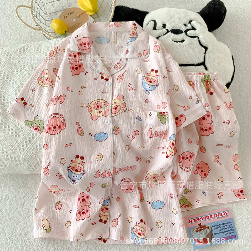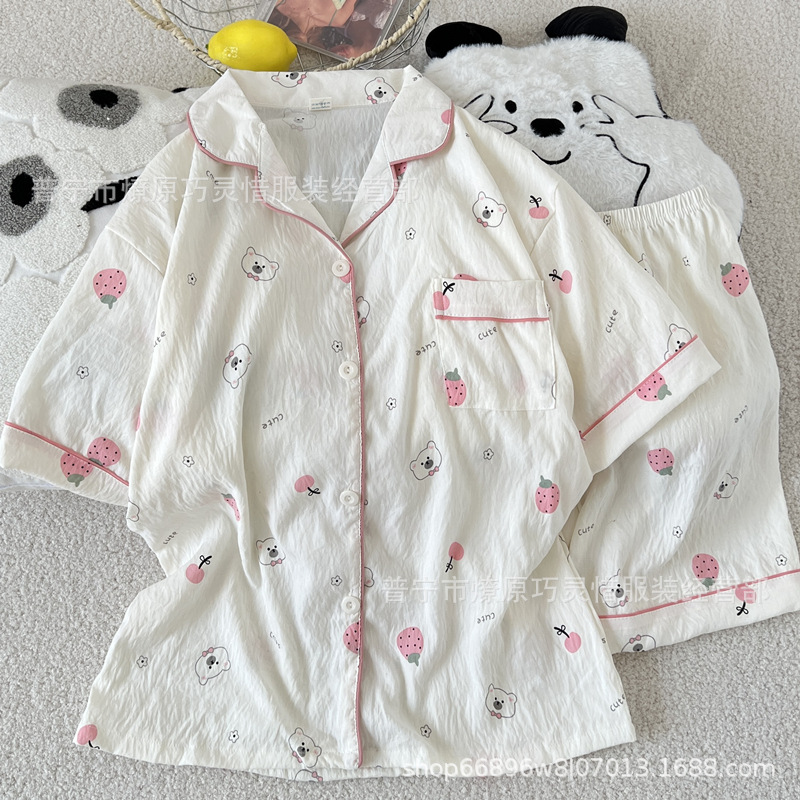 2025 여름 새로운 구름면 카디건 옷깃 달콤한 소녀 잠옷 짧은 소매 반바지 여성 홈 의류 세트